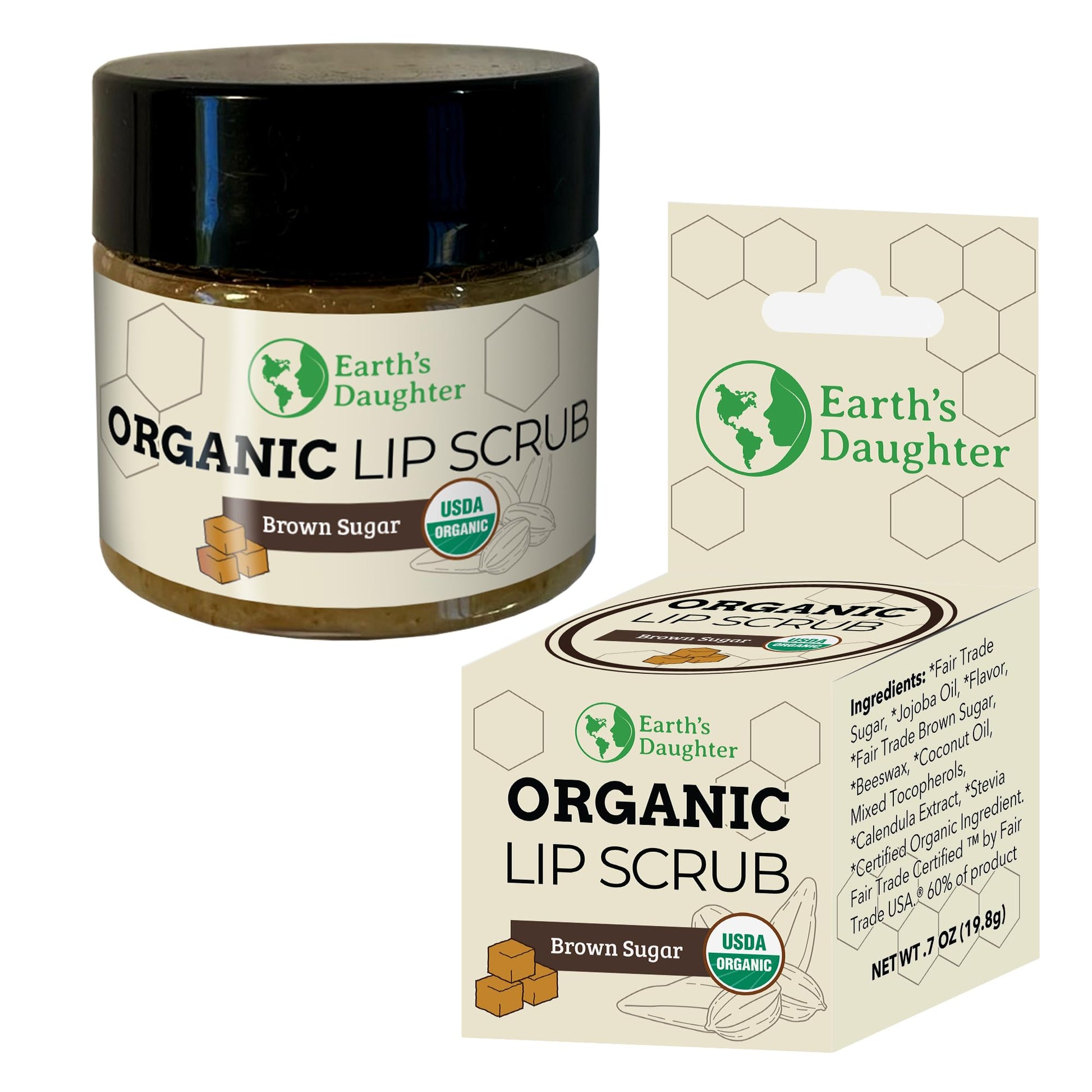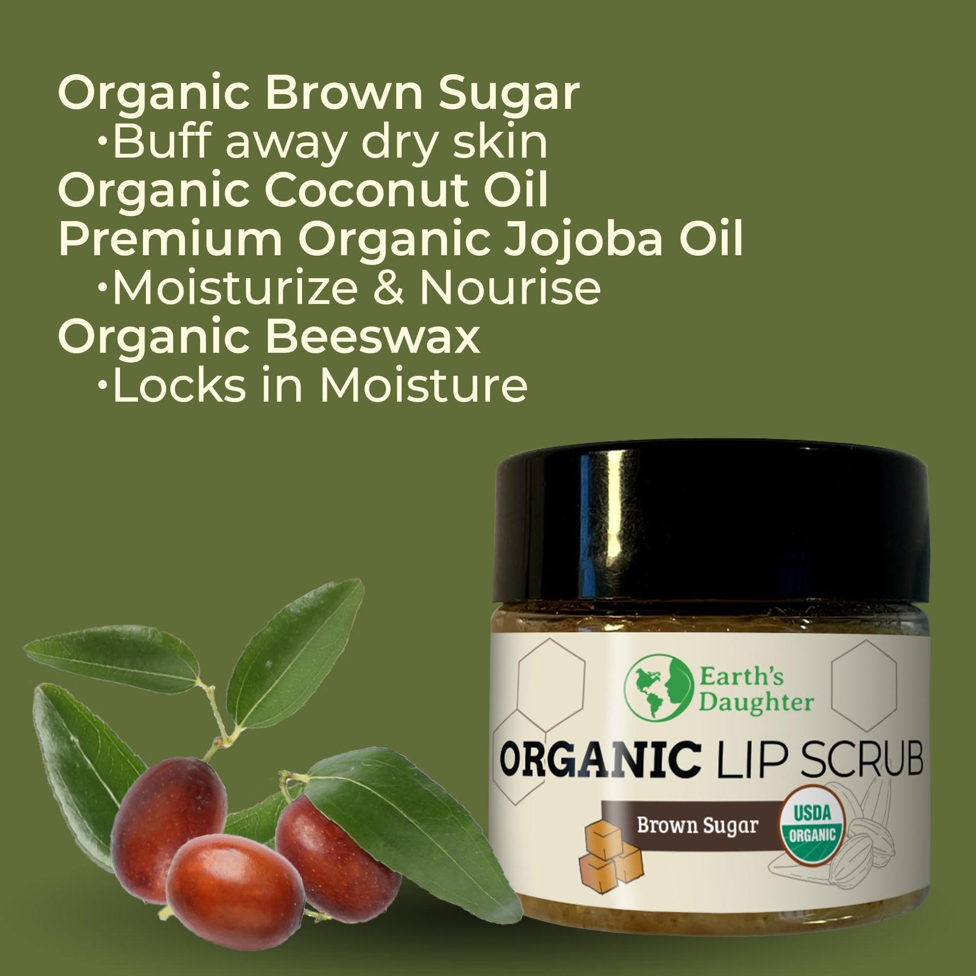 Earth's Daughter Organic Brown Sugar Lip Scrub 0.7 oz - USDA Organic Lip Exfoliator Scrub for Dry Lips - Fair Trade, Brown Sugar, Jojoba Oil, Beeswax, Coconut Oil - Scrubber Exfoliator