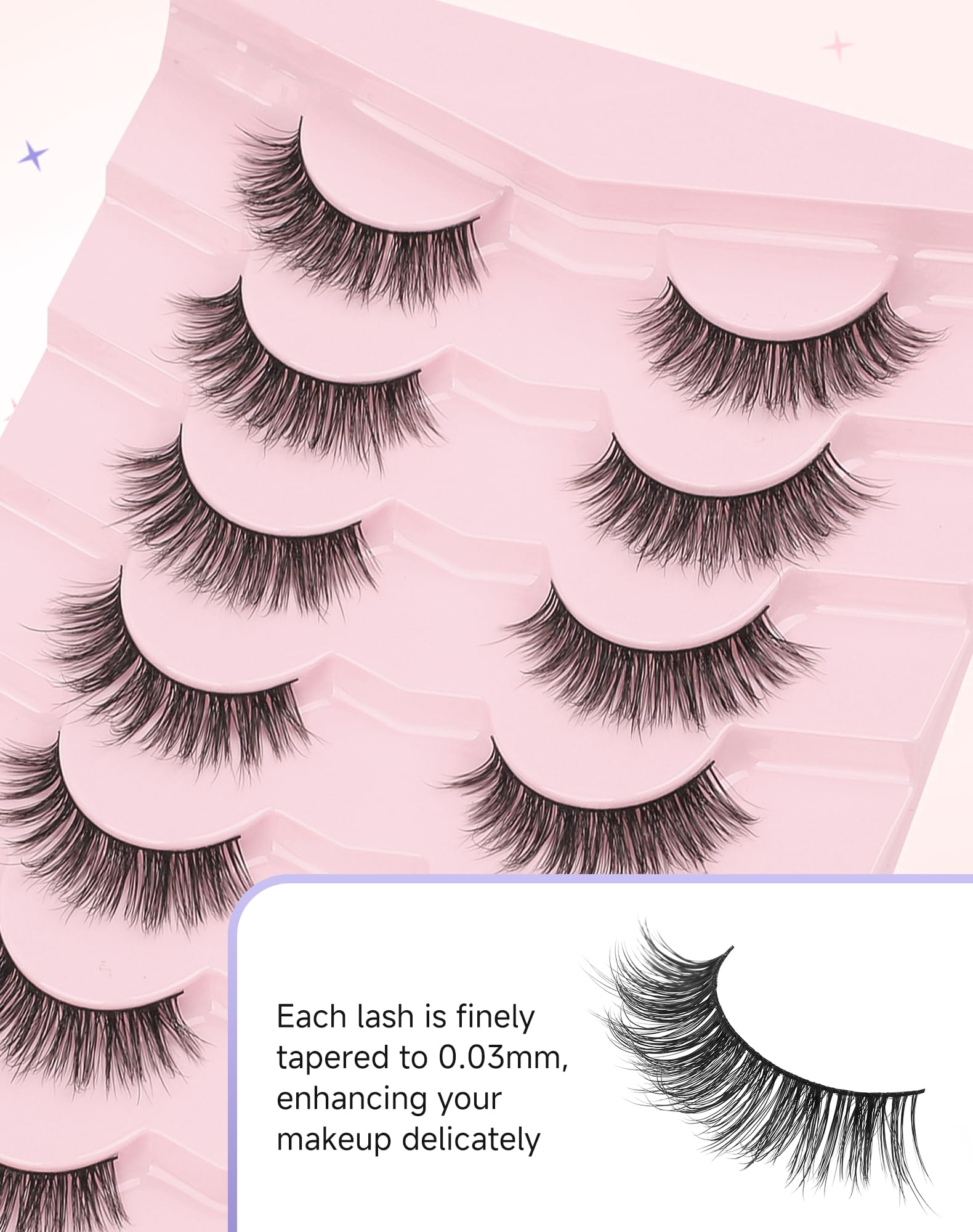 Easeful Natural Look Wispy Lashes Mink False Eyelashes C Curl Strip Lashes Pure-04