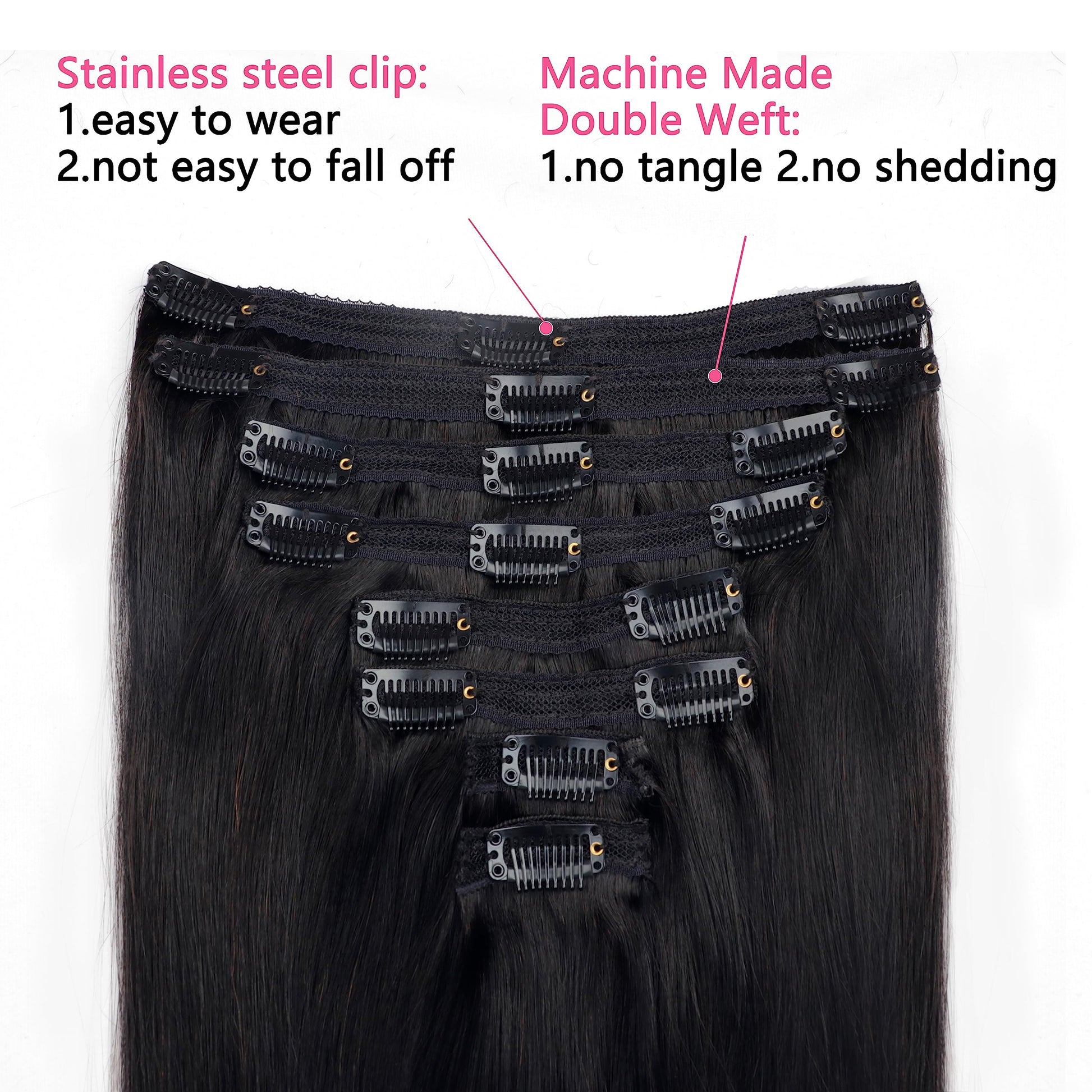 - ✨Easy to wear clip in hair: Compared with other ways of wearing, Clip in hair is easier and More convenient to let you keep striking even if you don’t have much time. According to your own hair volume, usually 2 packs can fill your head, increasing length and volume. If you like thicker hair, it is recommended to 3 packs.