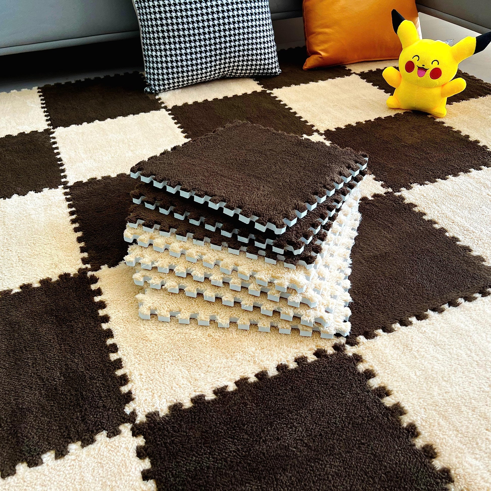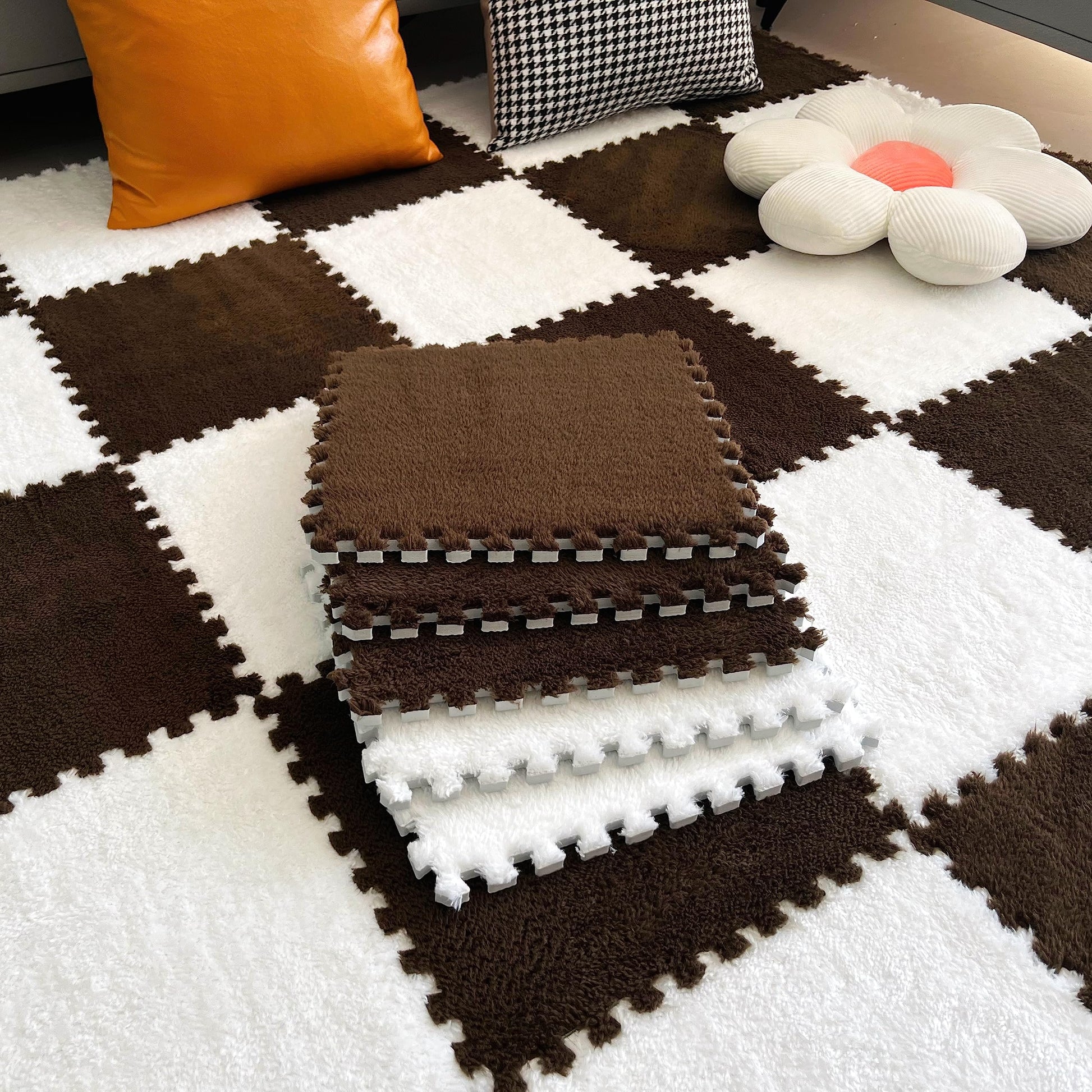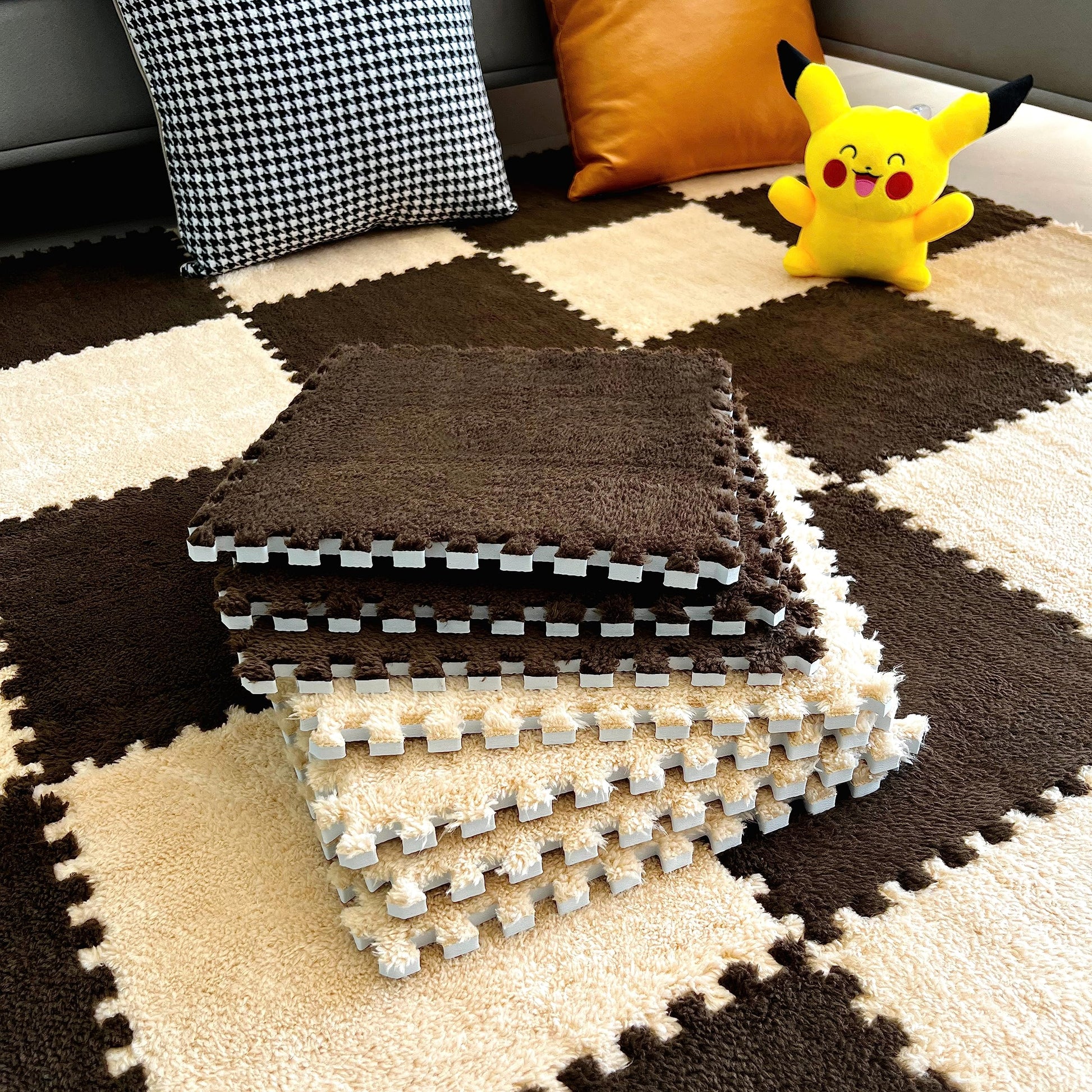 easycustomerlee 12pcs Interlocking Carpet Shaggy Soft EVA Foam Mats Fluffy Rugs Protective Floor Tiles Play Mats for Children Kids Room Home Parlor Bedroom(Brown)