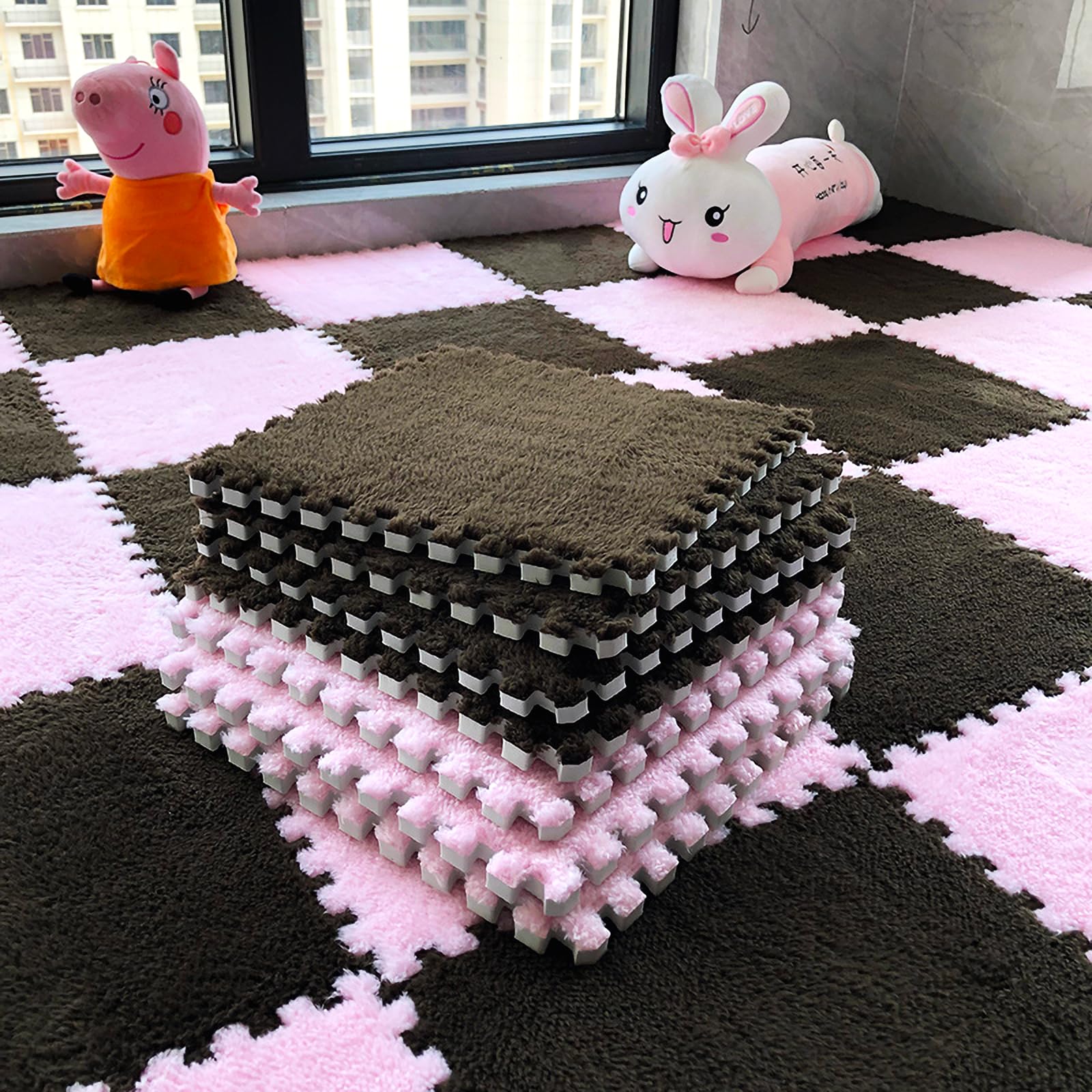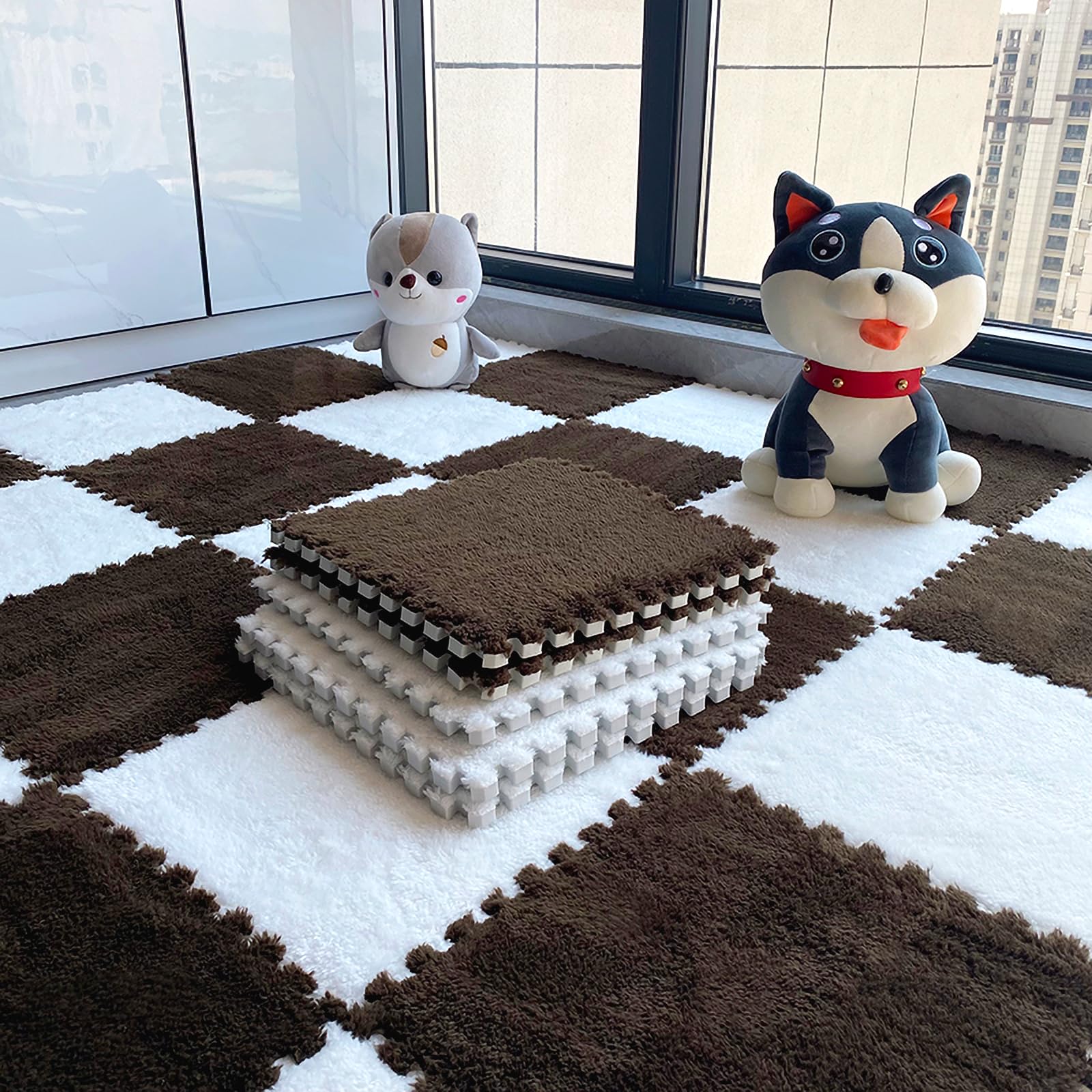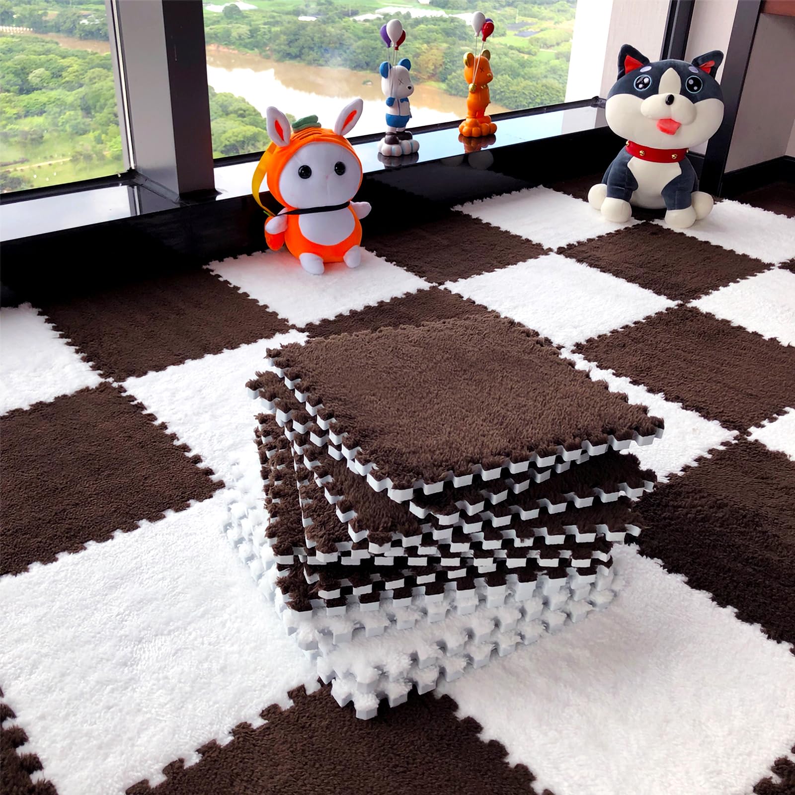 easycustomerlee 12pcs Interlocking Carpet Shaggy Soft EVA Foam Mats Fluffy Rugs Protective Floor Tiles Play Mats for Children Kids Room Home Parlor Bedroom(Brown)