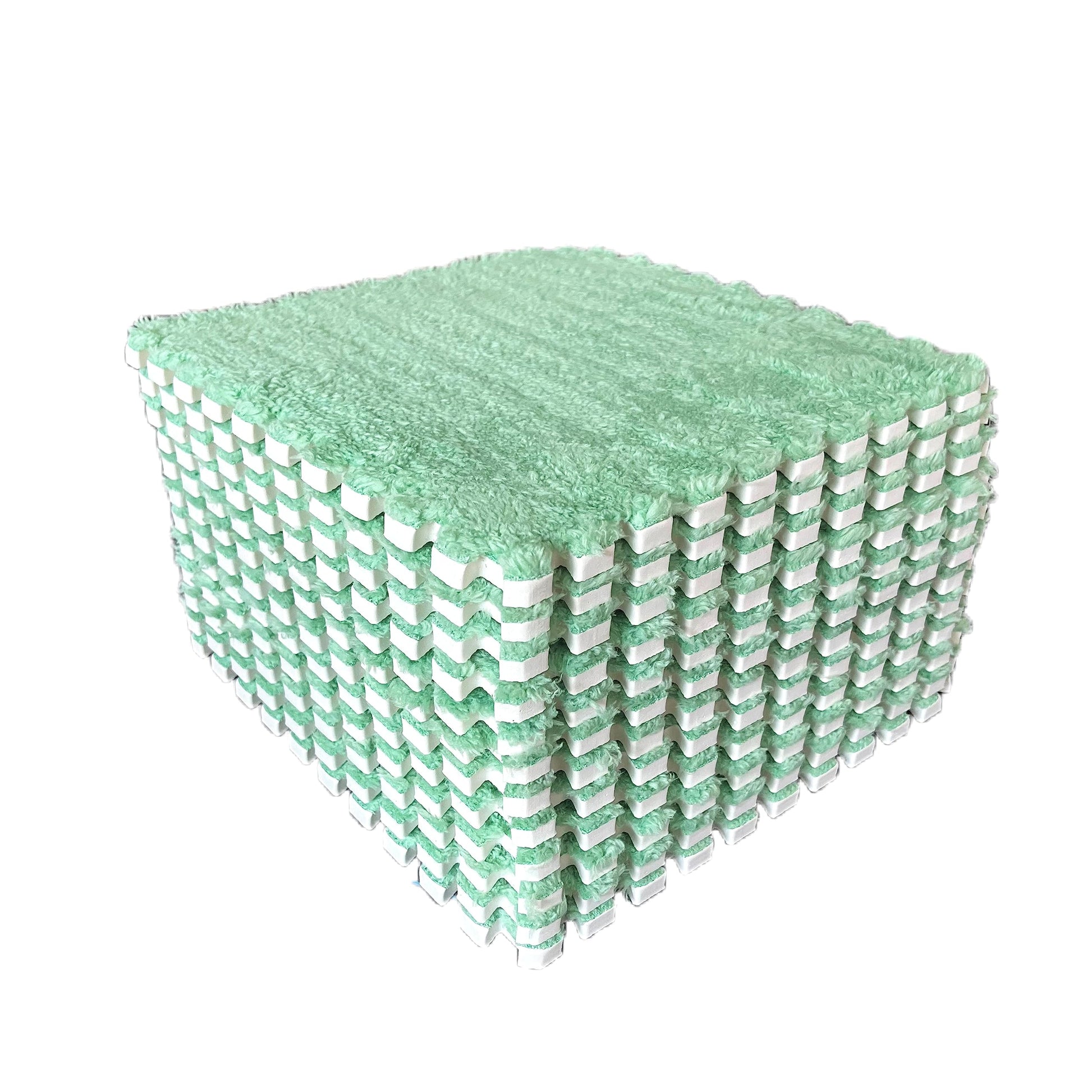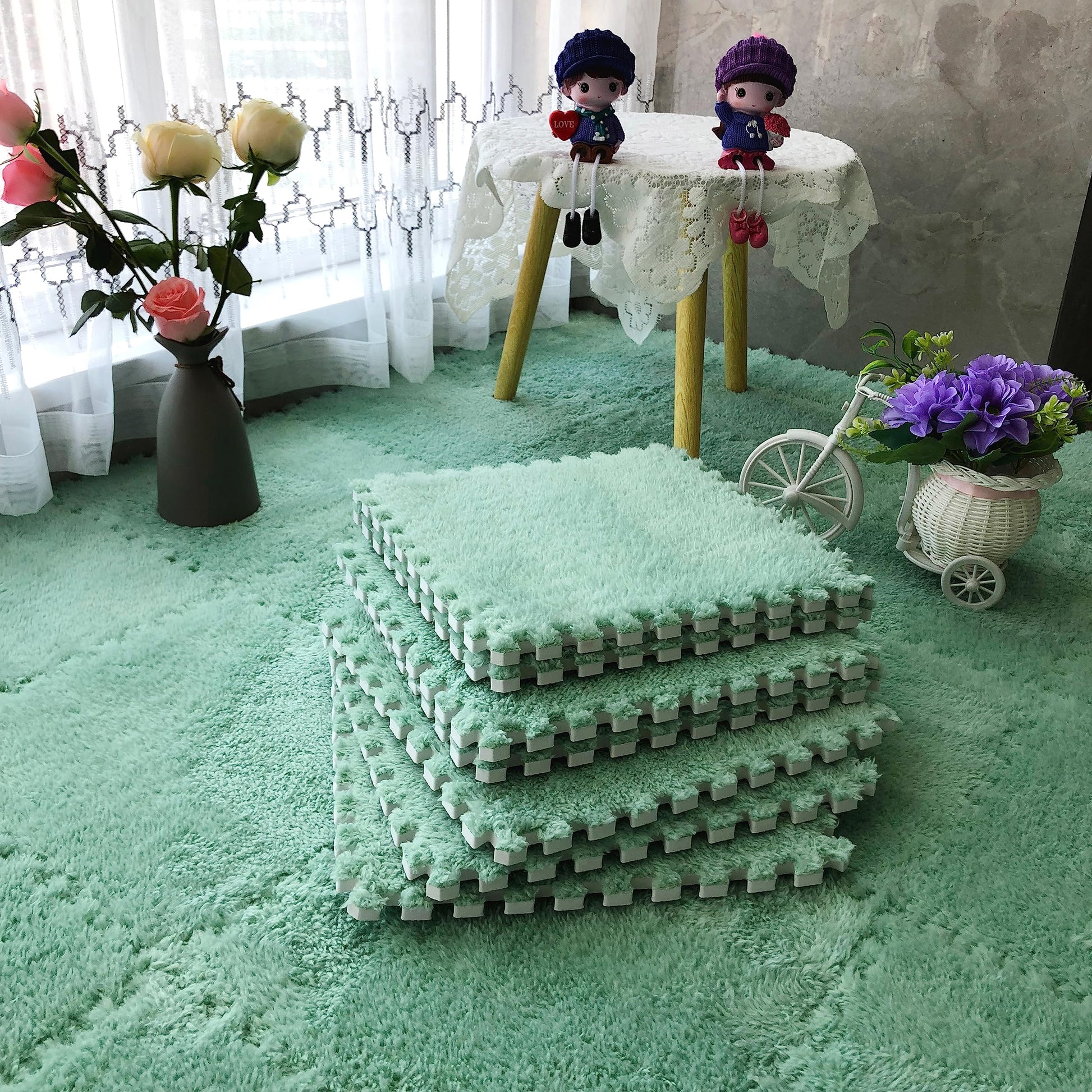 easycustomerlee 12pcs Interlocking Carpet Shaggy Soft EVA Foam Mats Fluffy Rugs Protective Floor Tiles Play Mats for Children Kids Room Home Parlor Bedroom(Mintgreen)