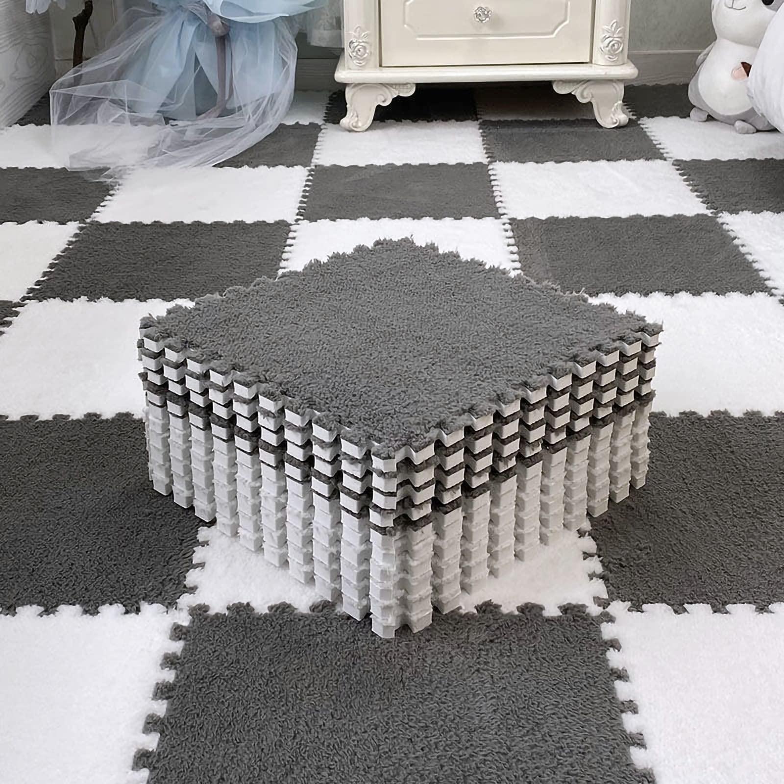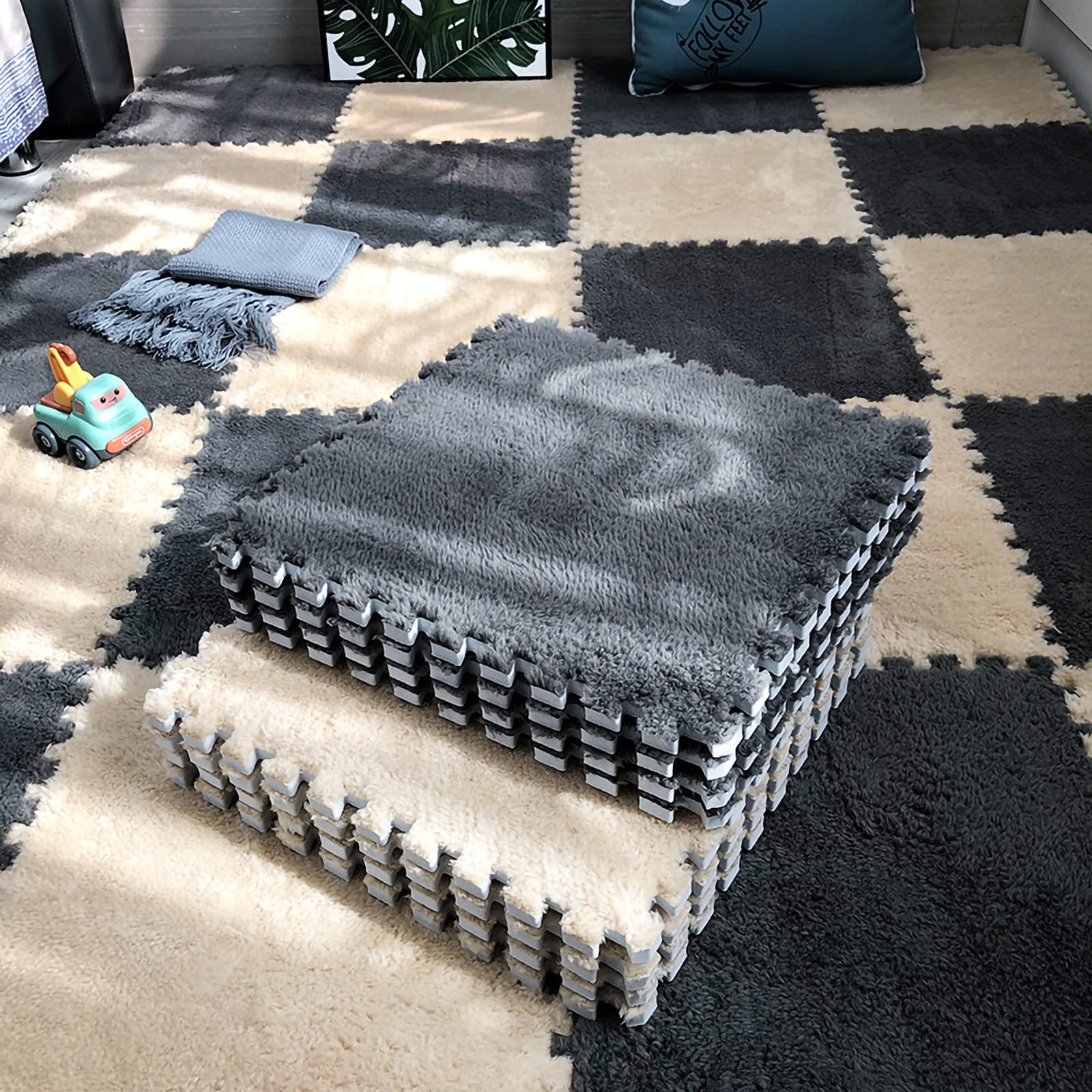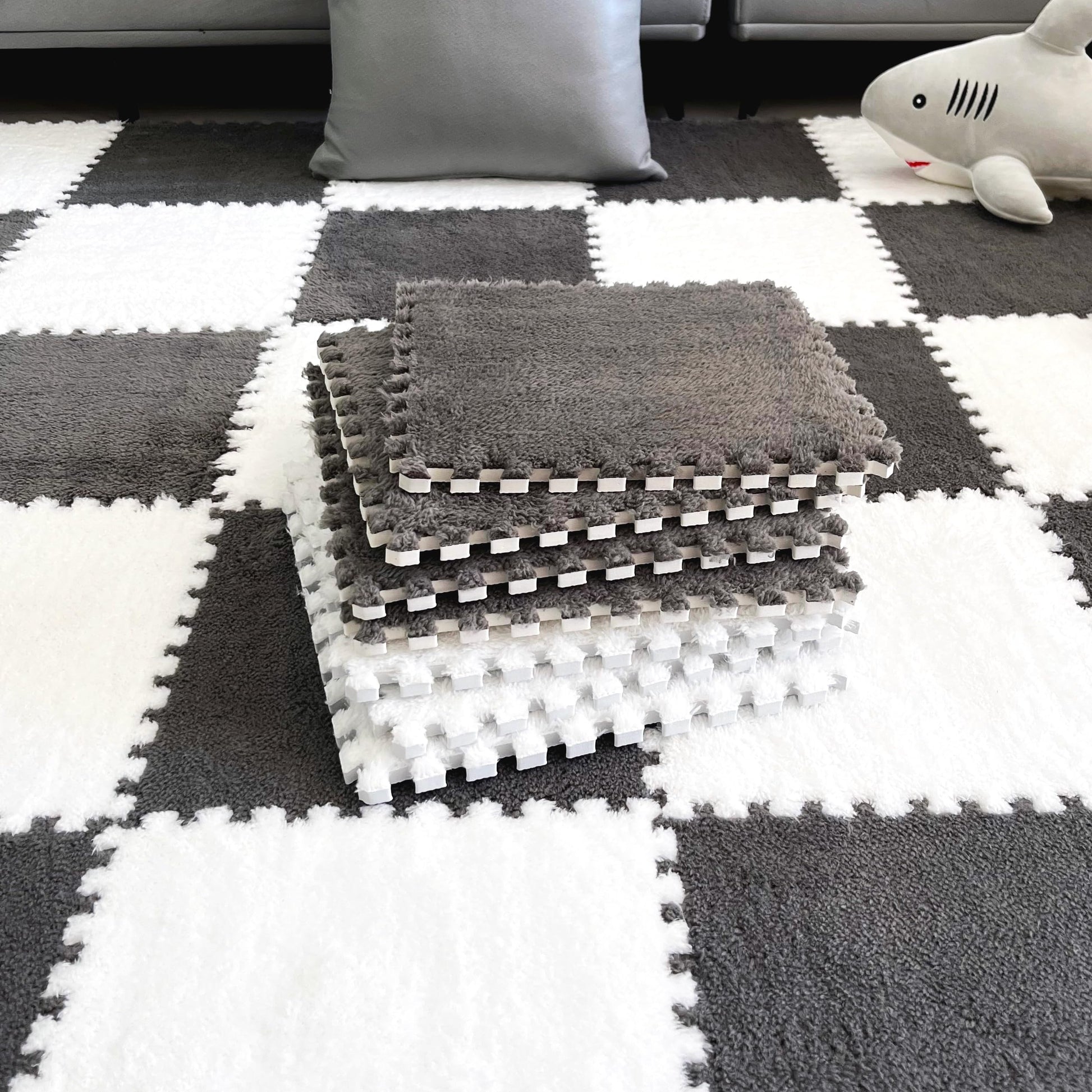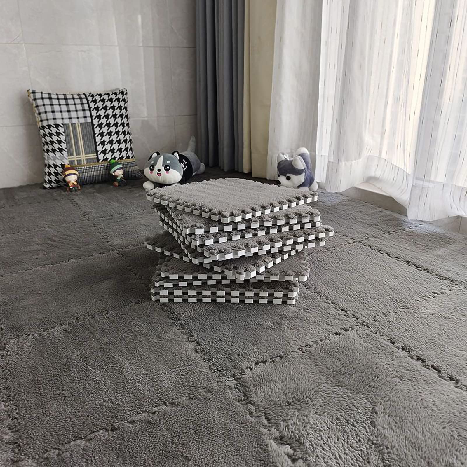 easycustomerlee 12pcs Tiled Puzzle Play Mats Interlocking Shaggy Soft EVA Foam Mats Protective Floor for Children Kids Room Home Parlor Bedroom(Gray)