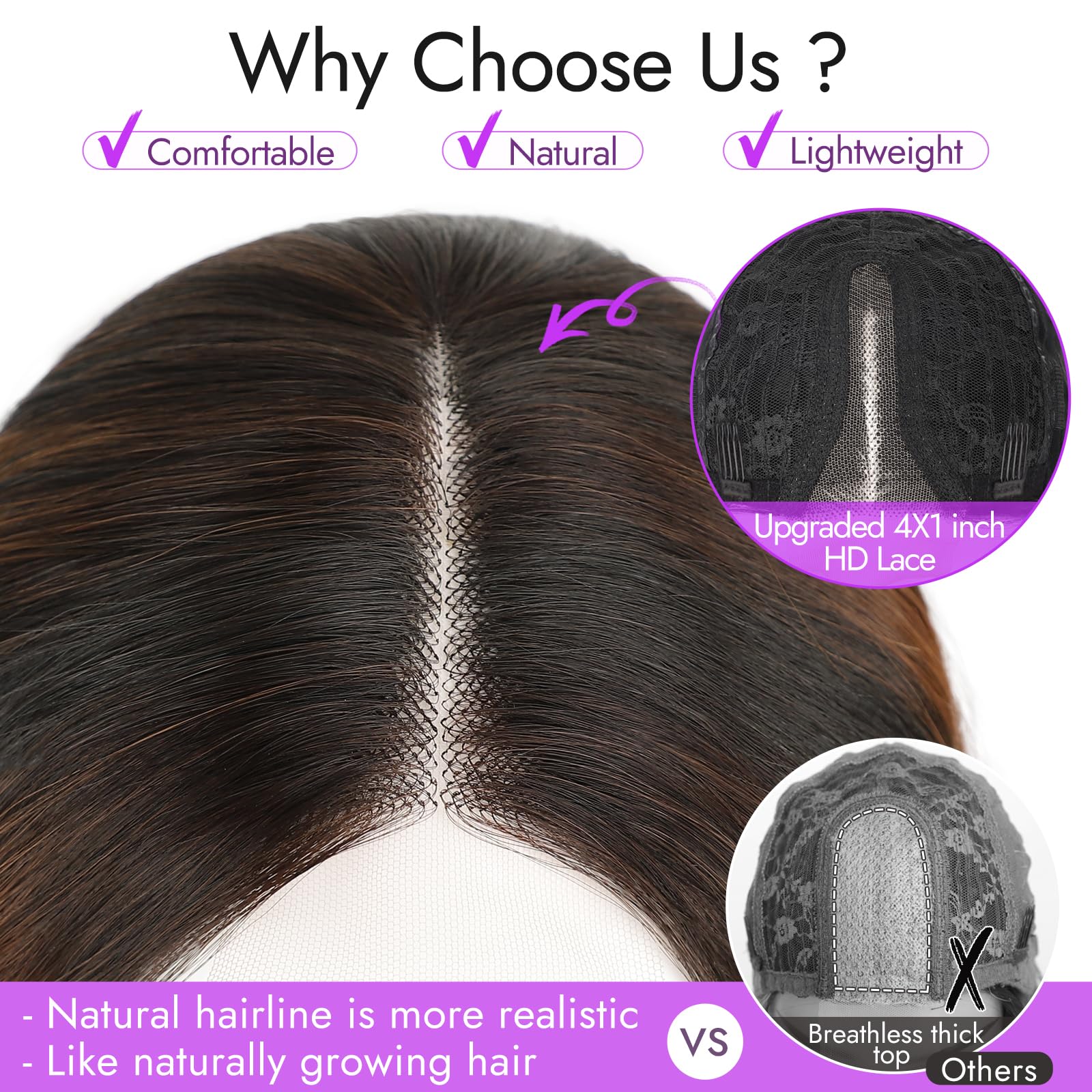 - Upgraded Hair: The HD lace is used on the front of the forehead to enhance the realism of the hairline. It's real glueless design and lightwight, no damage to the scalp. Save your precious time, beignners friendly