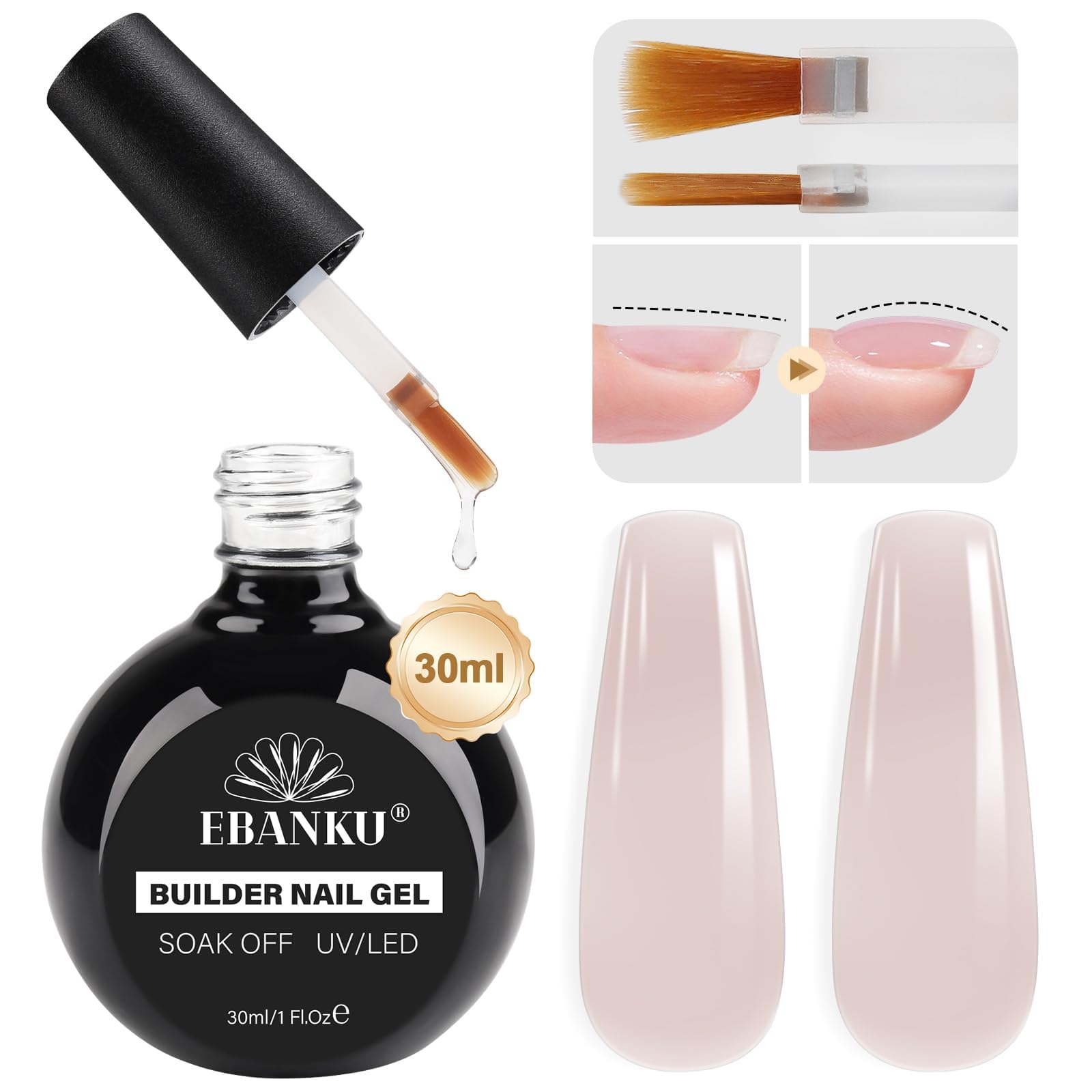 1.Easy and Quick to Apply Beginner Friendly: EBANKU nude pink builder nail gel, with built-in ultra-thin brush, has moderate thickness and self-leveling make it easy to manipulate, and quick to build the nail shape or nail apex that gives the nail starters completely control to achieve the amazing nail. Compared with our gel builder, you do not need to order other professional brushes to create natural strong nails and evenly infill the nail edge.