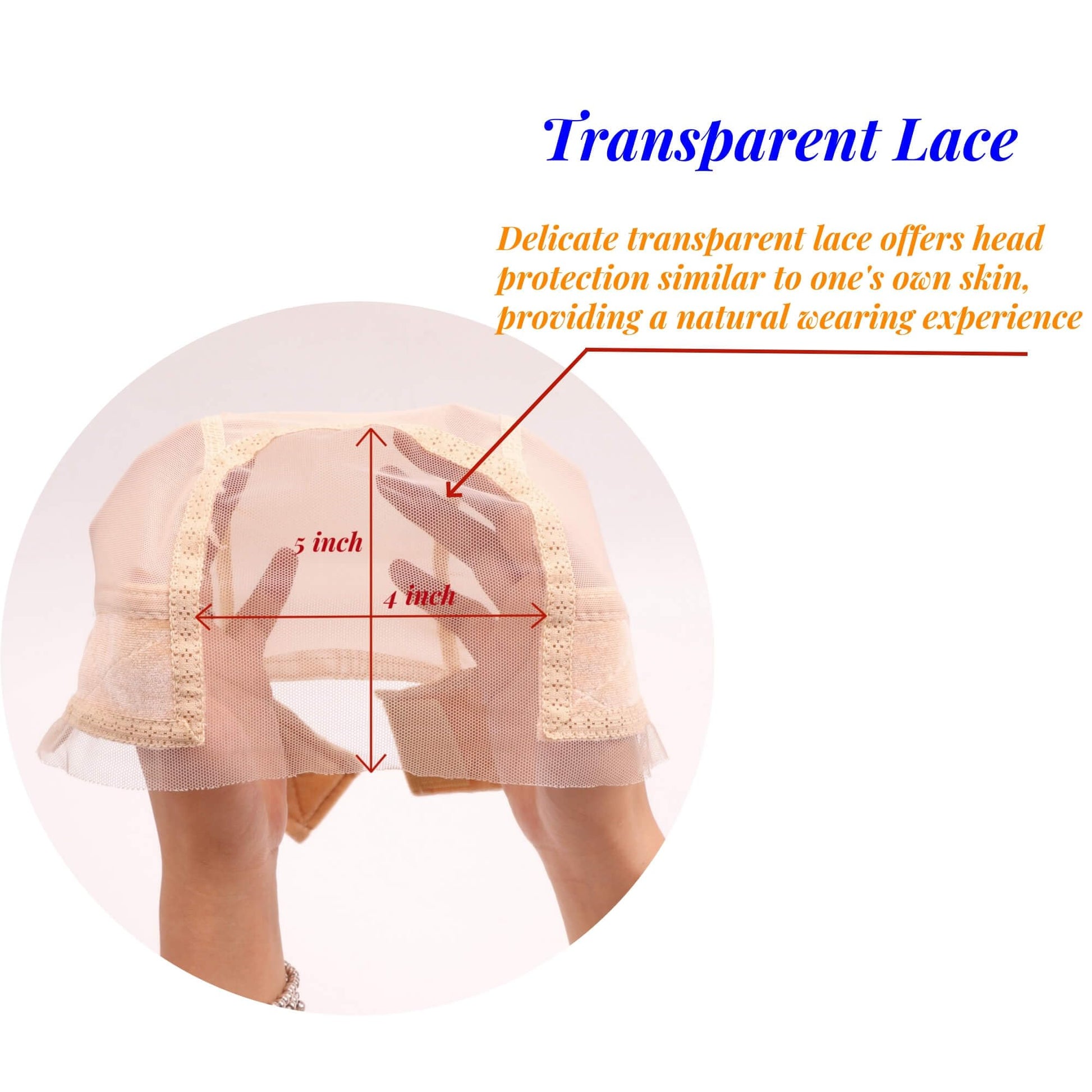 Ecojunmi Lace Wig Cap with Grip Band for Keeping Wigs in Place, 4X5 inch Transparent Adjustable Lace Wig Cap with Headband, Non-slip Wig Gripper (Brown)