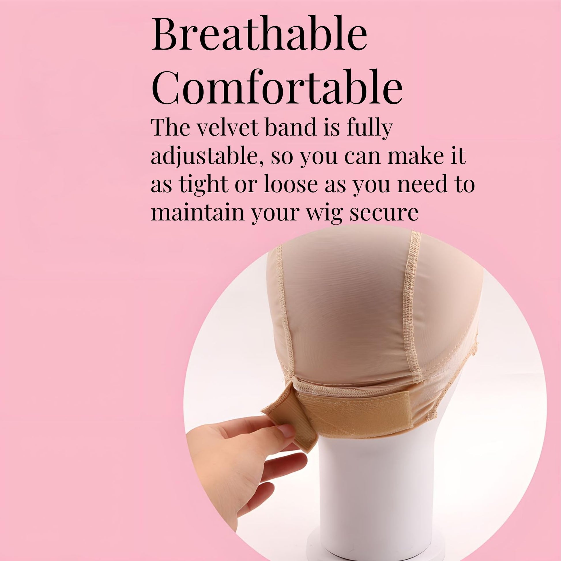 - SOFT & COMFORTABLE MATERIAL: This breathable wig cap is made of breathable stretchy hairnet and soft elastic velvet, it protects your sensitive scalp from itchy friction irritation. No wig glue, tape, clips, or combs are required to use our lace wig cap.