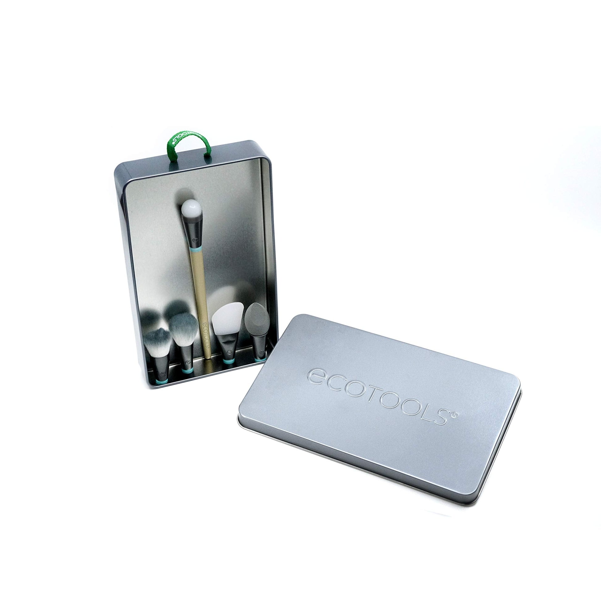 - EcoTools Wake Up + Glow Interchangeables Makeup Brush Set Includes: (1) Interchangeable Small Handle, (1) Mask Applicator Head, (1) Under Eye Soother, (1) Prep Brush Head, (1) Anti-Shine Brush Head, (1) EcoFoam Head, and (1) Reusable Tin Tray with lid