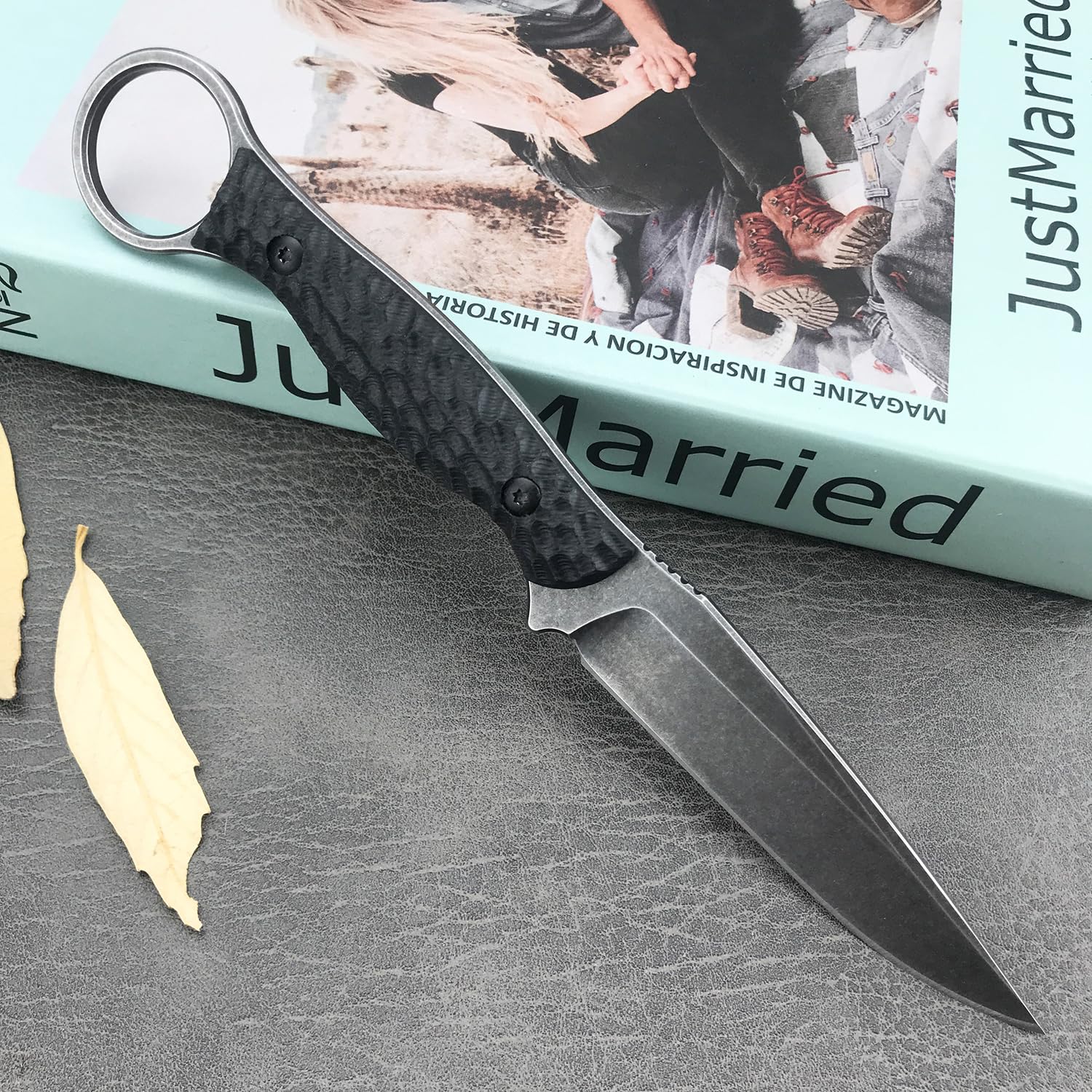 - Full Tang survival knife:Anti-Slip Full Tang G10 Handle with solid stainless steel blade. Ergonomic handle made of black G10, easy to hold, has a good balance between blade and handle