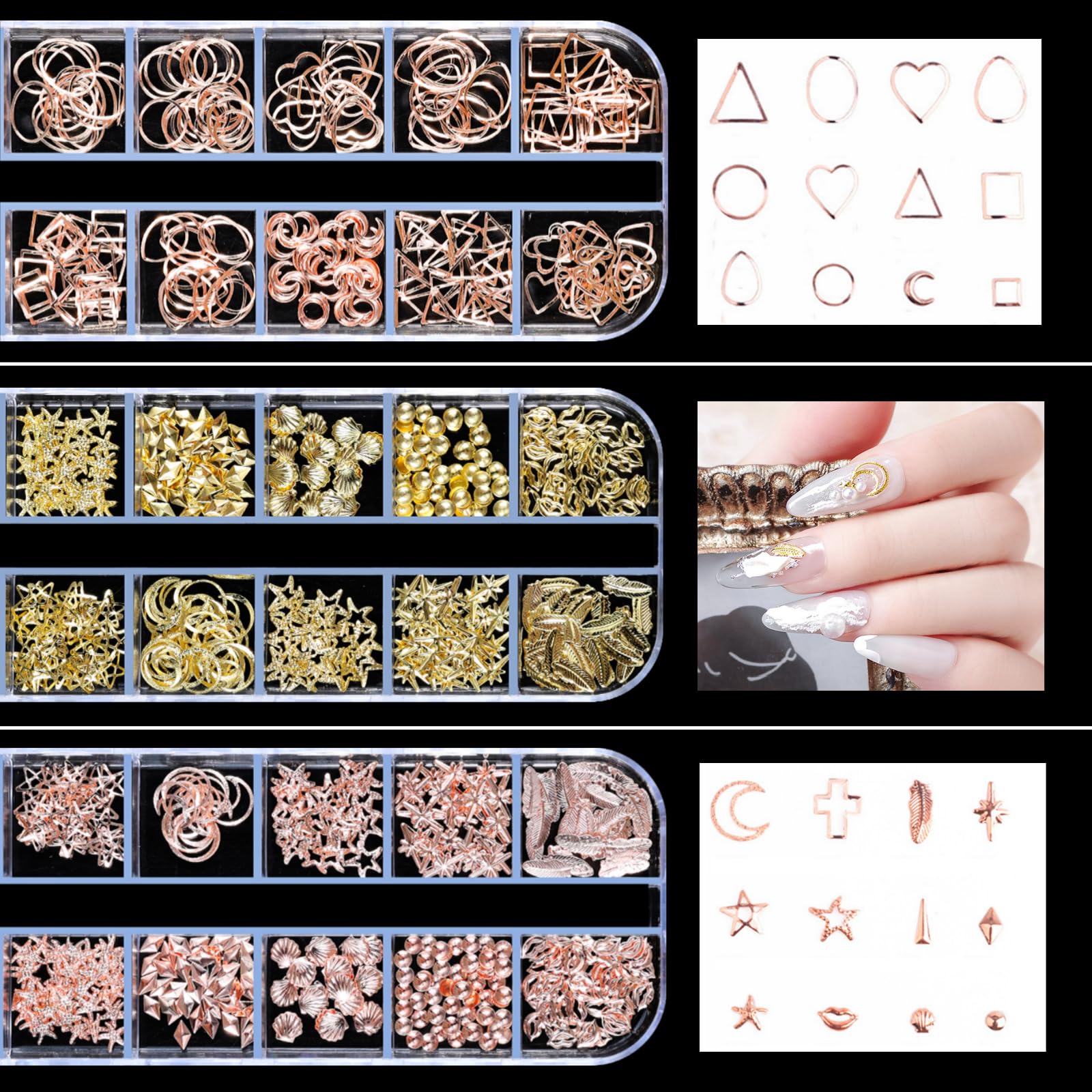 - Mixed sizes and color: Beautiful and shinning silver and rose gold color will never out of style,meet with all the fashion. Fabulous effect of the nail decoration will make your nail art more attractive and elegant. Fabulous glitter effect of the nail decoration will make your nail art more attractive and elegant.