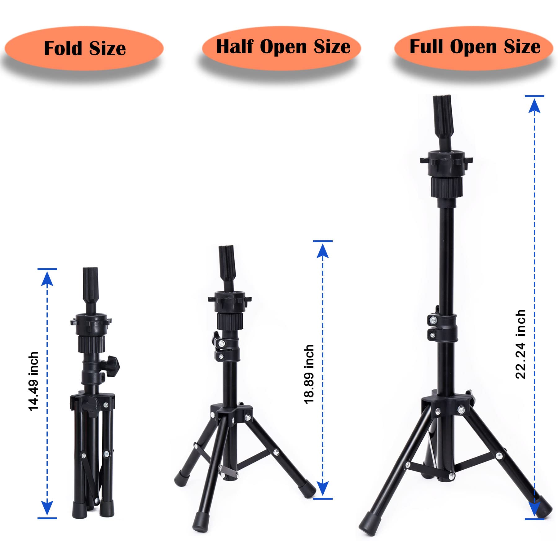 - [hight of tripod stand] Folding size of the wig tripod stand is 14.49 inch, and the unford hight is :18.89-22.24 inch, suitable for desktop or dressing table that sitting to use, every convenient to use at home or out