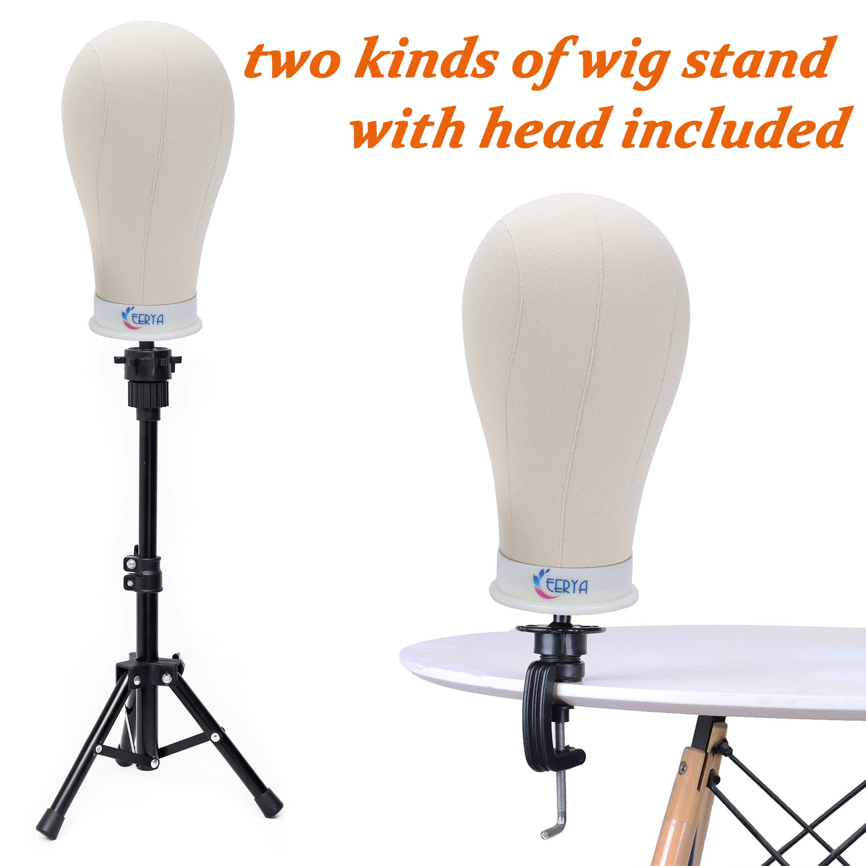 - [Wig head with Stand Package included] 22 inch Canvas wig head, wig tripod stand and comes with gifts( lace wig caps, clamp wig stand, Styling Hair Clips,T-pins, C Needles, Thread)