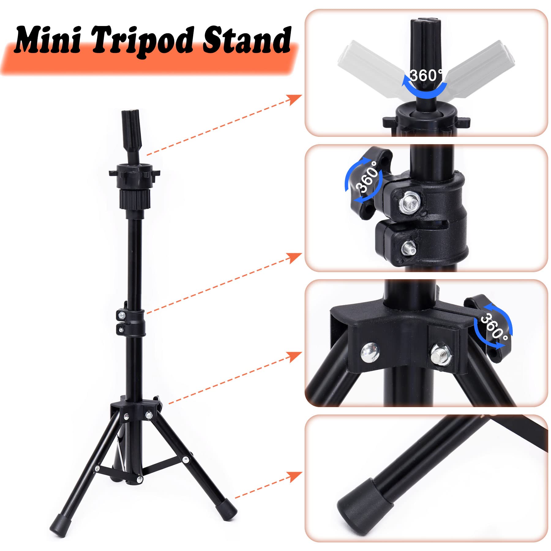 - [wig stand tripod with head] The tripod stand is also suitable all kinds of wig heads, such as canvas block head, mannequin head, hairdressing training head, doll head, and foam head