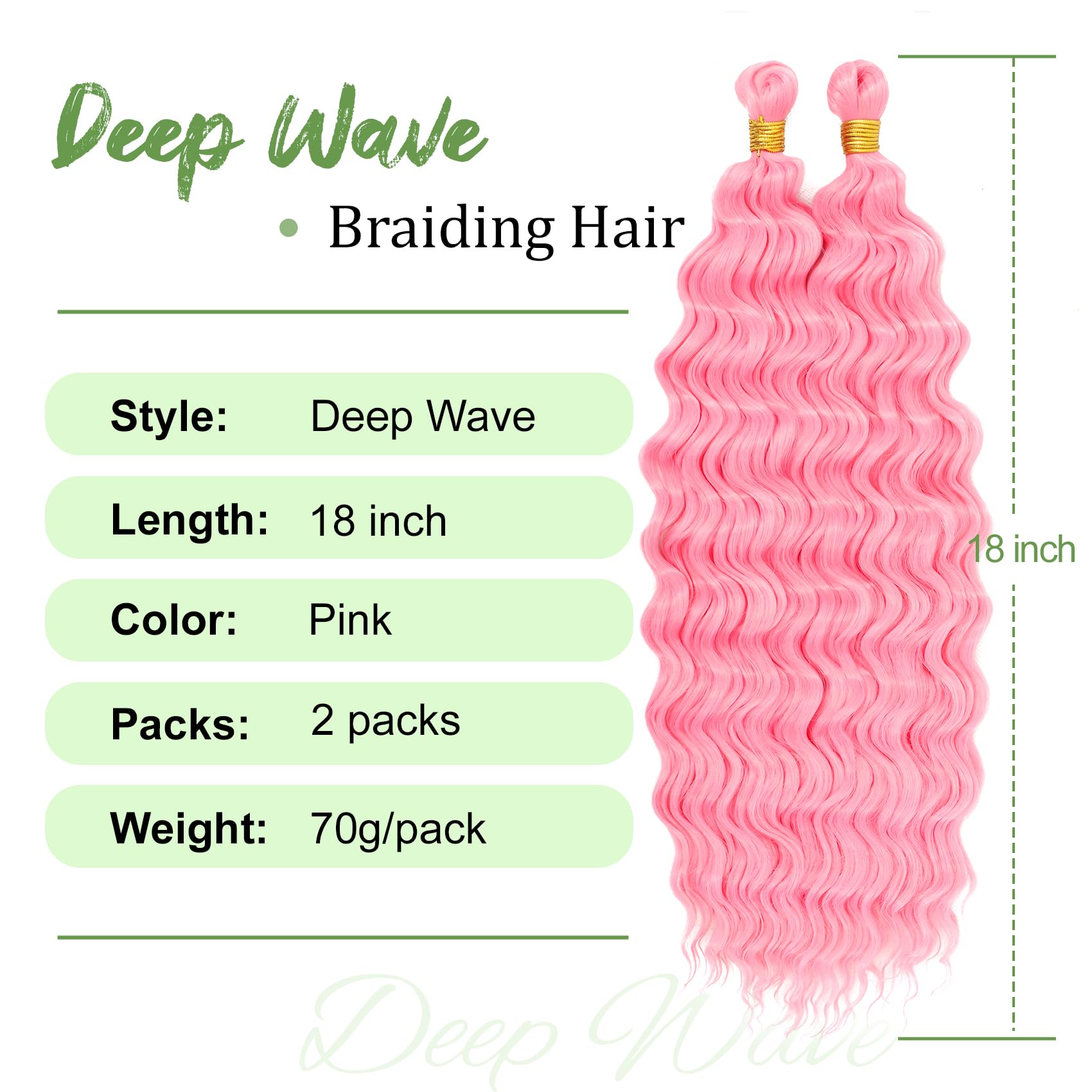 Eerya Long Curly Braiding Hair 18 Inch 2 Packs Pink Ocean Wave Crochet Hair for Black Women Deep Wave Braiding Hair for Boho Braids (18 inch, Pink)