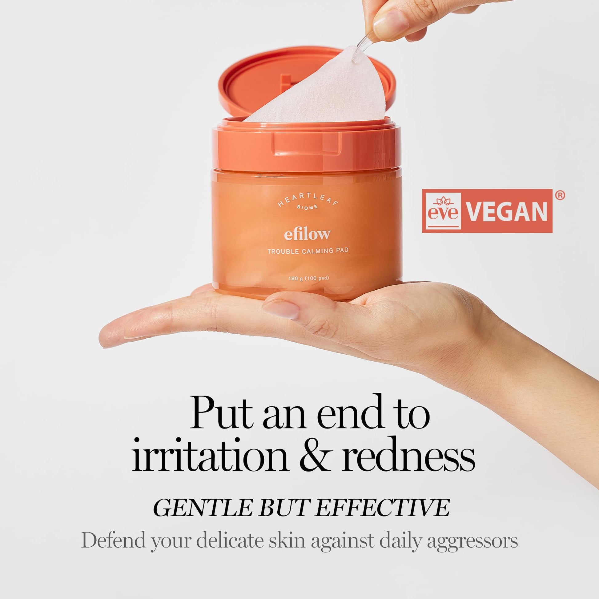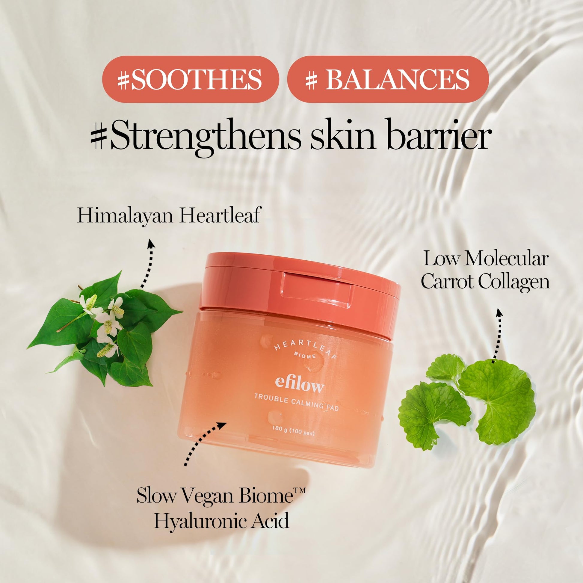EFILOW Heartleaf Biome Trouble Calming Pad 100 Sheets | Gentle Korean Toner Pads for Sensitive Skin | Soothing Cleansing Pads for Face Redness and Sensitivity | Pure & Refreshing Korean Face Pads