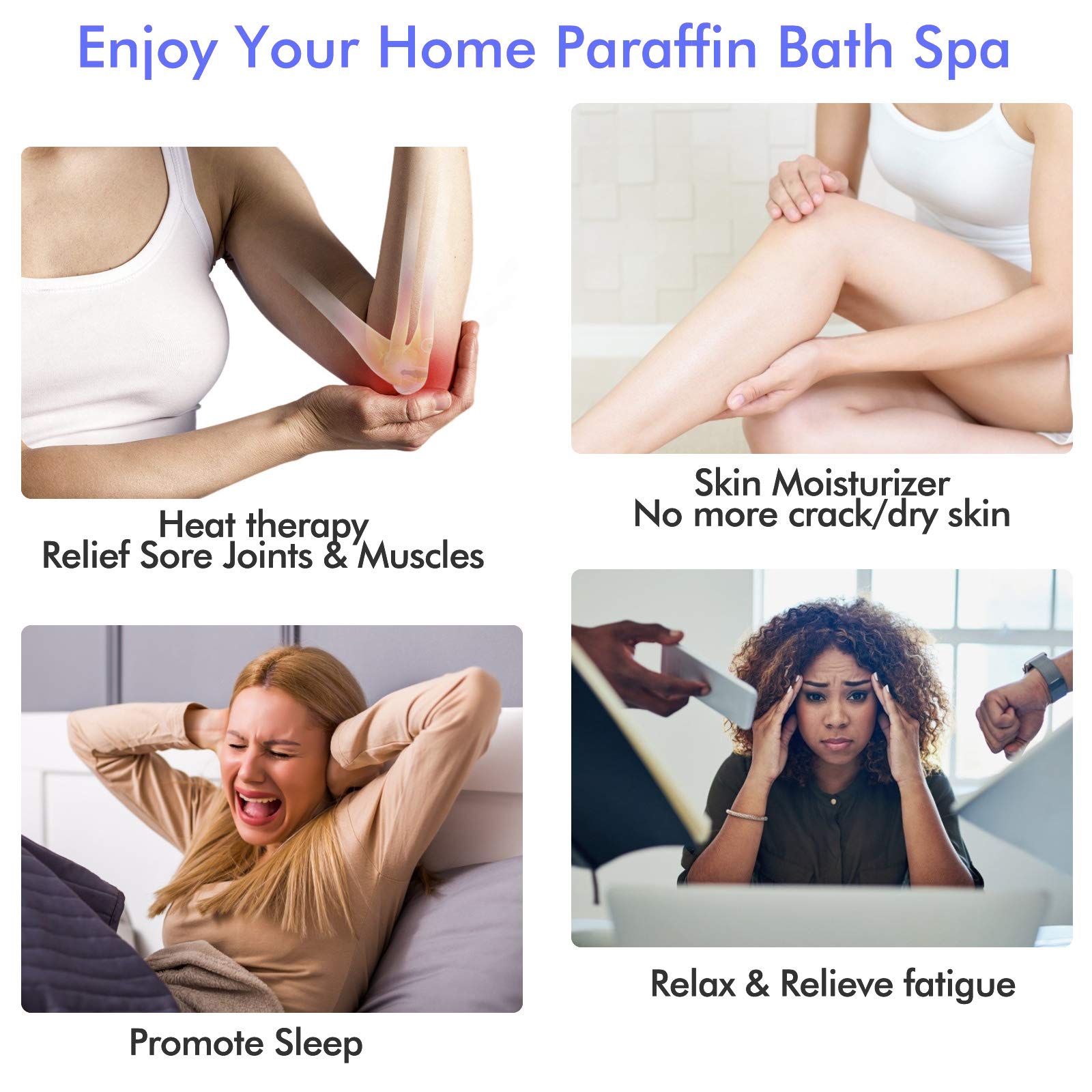 - Beautify your hands, feet and elbow & Help sooting arthritis at Home: The paraffin wax smoothens and softens dry skin on hands, elbows, and feet;Heat therapy for stiff hands is great, this parrafin bath spa system at home is convenient and works great for arthritis. It's not a cure but it can improve mobility