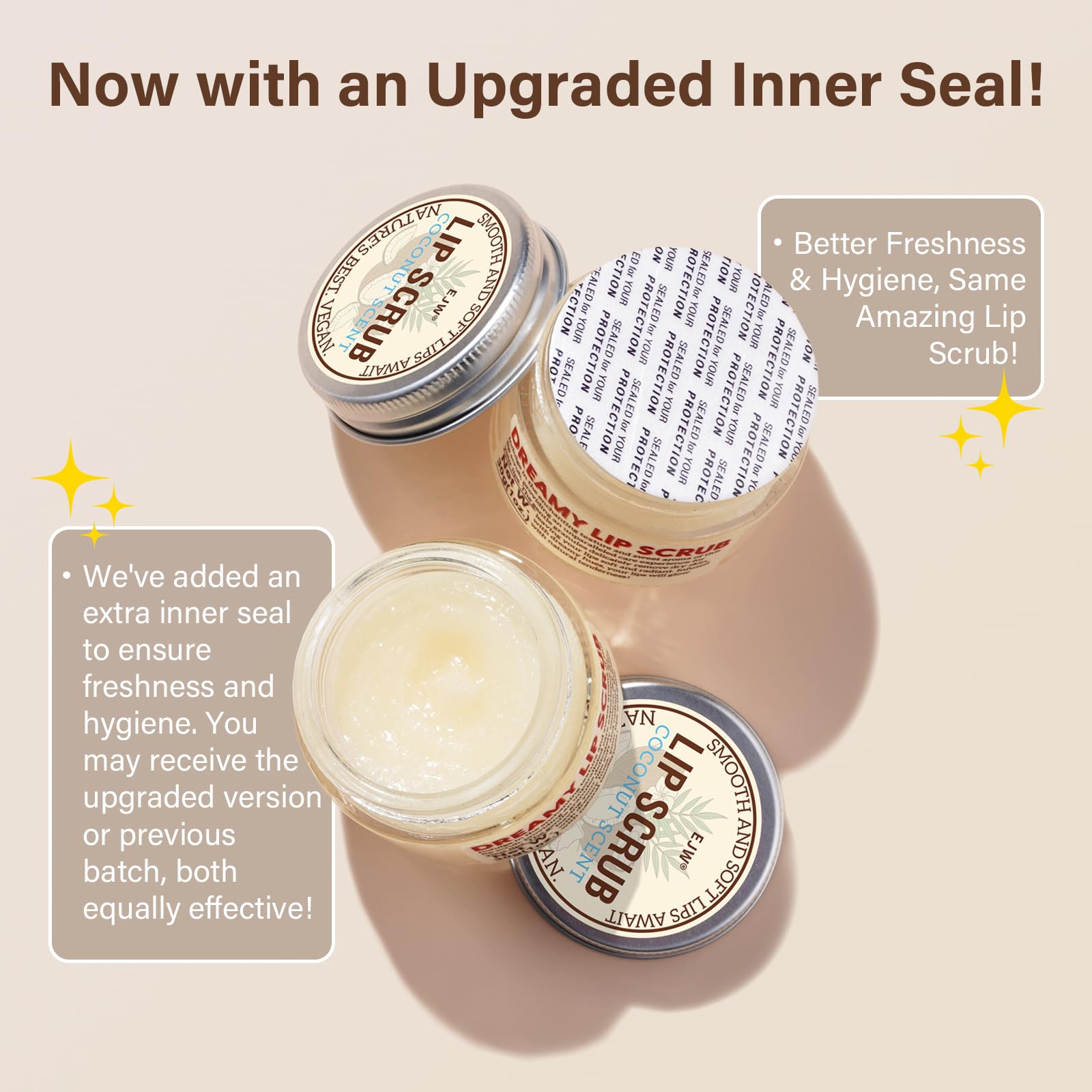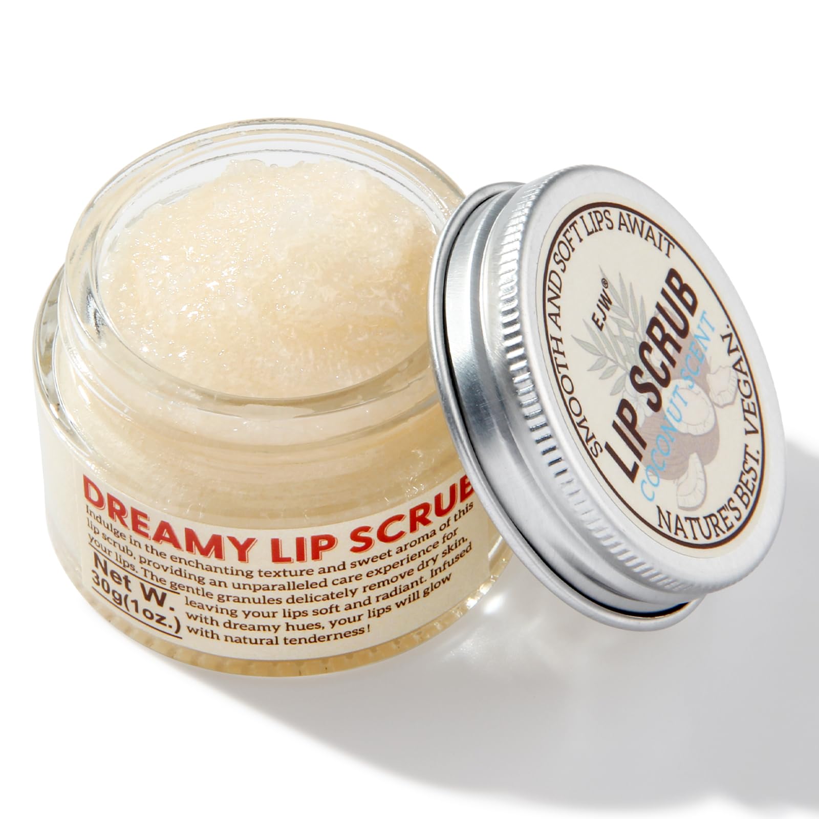 EJW Nourishing Lip Scrub - Infused with Coconut Oil, Olive Fruit Oil, and Jojoba Seed Oil, 1.05oz - Exfoliate, Hydrate, and Glow for Chapped Dry, Dark Lips