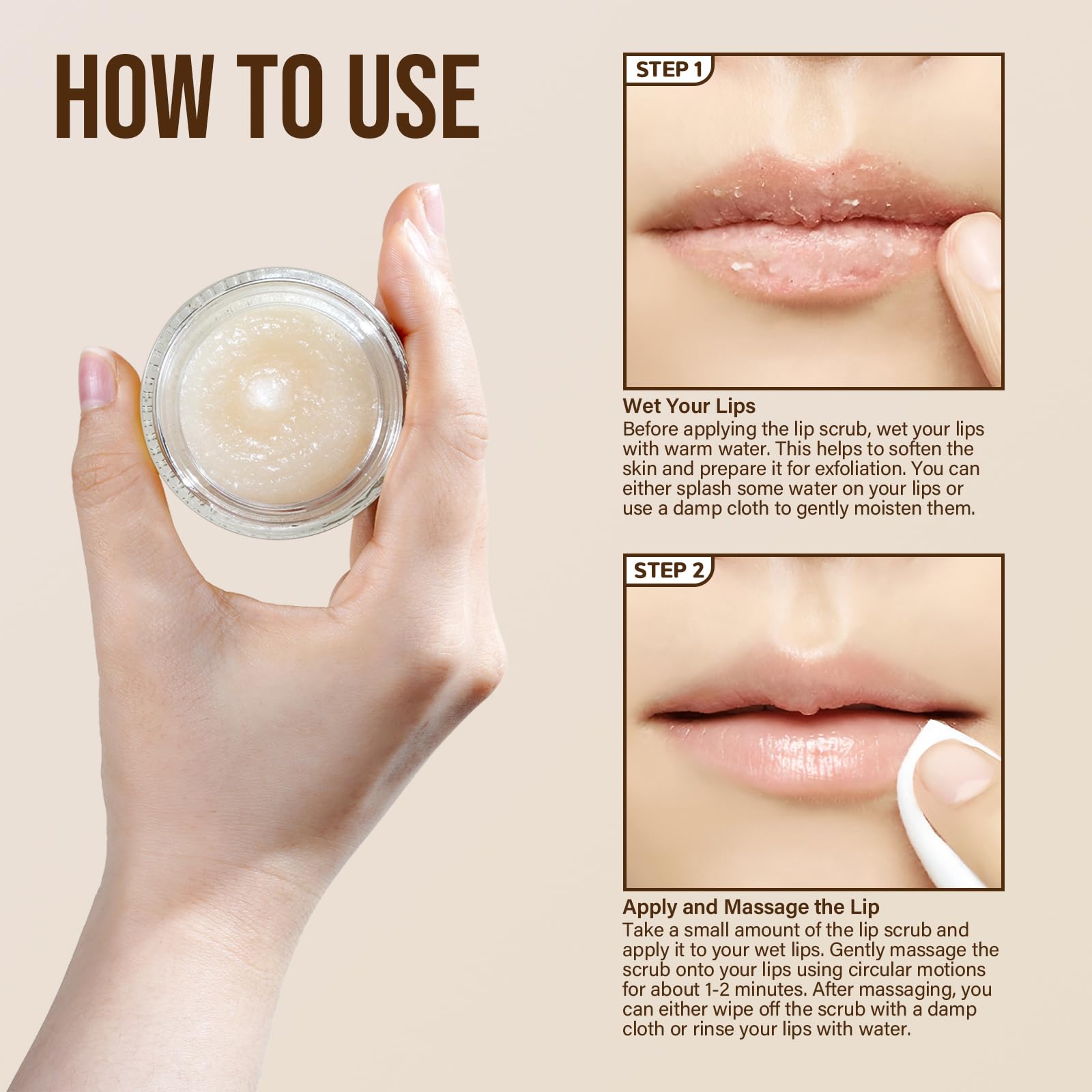 - Long-lasting Makeup: Provides you with the perfect foundation for long-lasting makeup. By removing dead skin and dryness from your lips, our lip scrub creates an ideal smooth canvas, making it easier for your lipstick or lip gloss to adhere and last longer;
