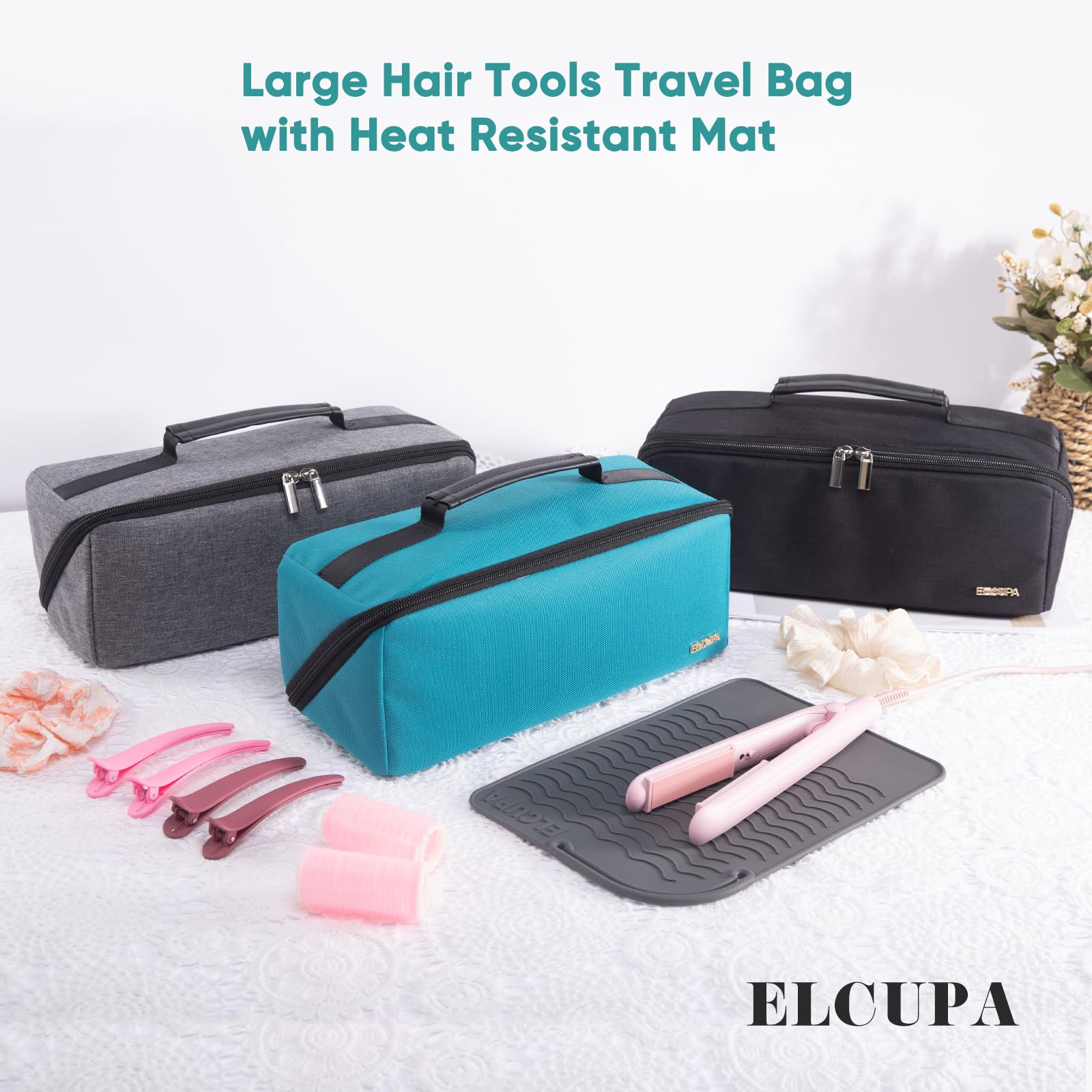 ELCUPA Large Travel Bag - 2in1 Hair Tools Organizer for Dryer Brush, Flat Irons, Straighteners, Curling Irons, Makeup Bag for Travel Essentials