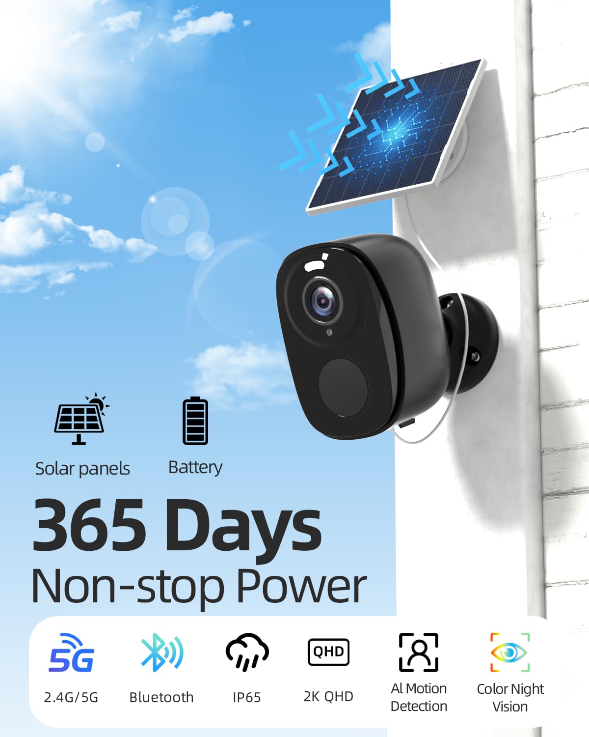 - 【365 Days Power with Solar Panel】Never worry about charging again! This wireless outdoor security camera features a solar panel that ensures continuous power for a full year, making it ideal for outdoor locations. No more frequent recharging!