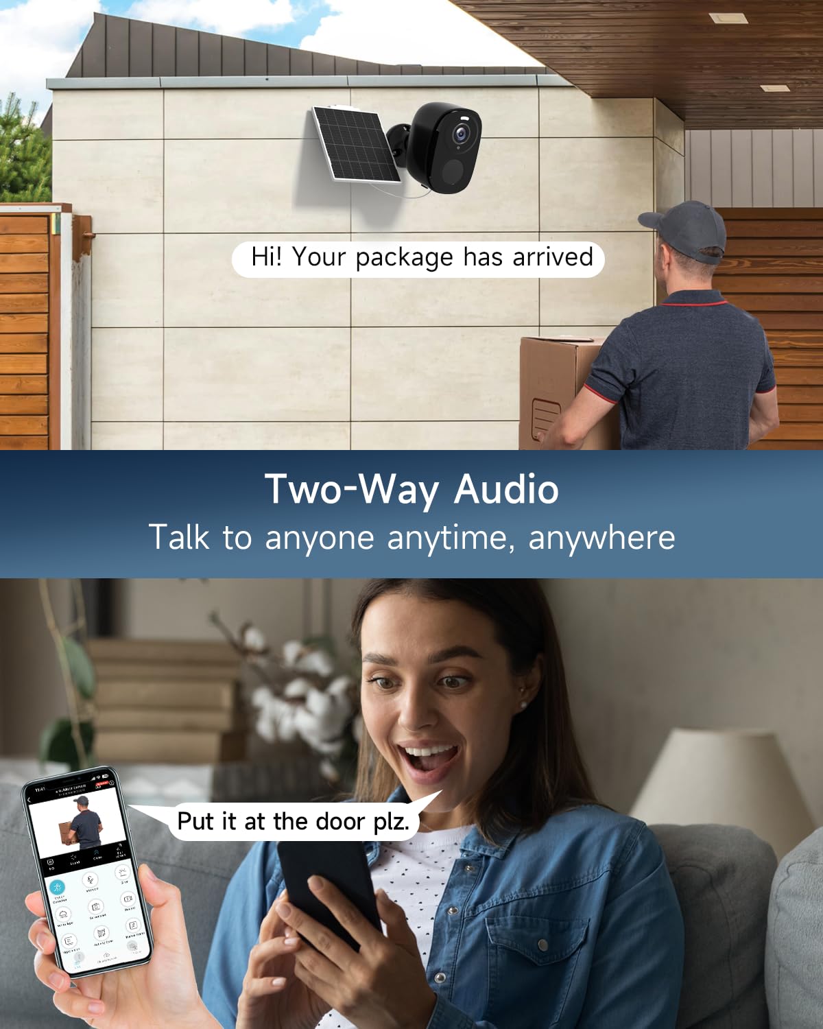 - 【Two-Way Audio & Smart Alerts】Communicate directly through your camera with two-way audio. Use the built-in speaker and microphone to talk to visitors, delivery drivers, or intruders. Smart alerts with light and sound ensure immediate deterrence.