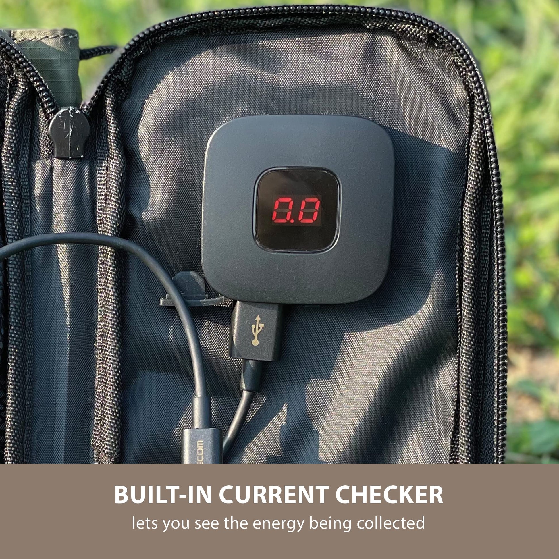 - BUILT-IN CURRENT CHECKER - Has current checker LED display to check the solar power generation going into the USB ports.