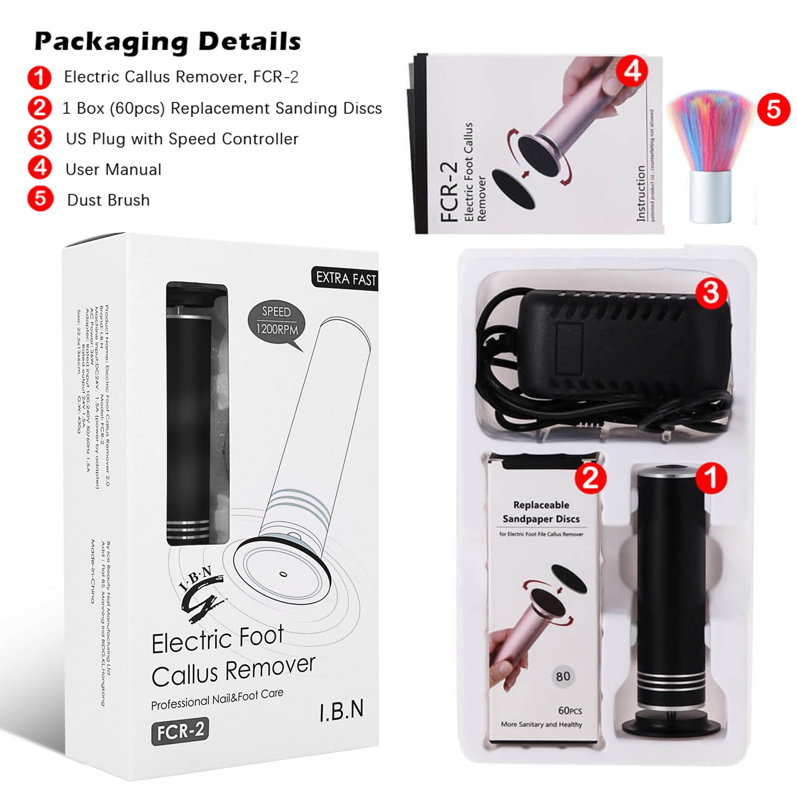 - EFFICIENT ELECTRIC CALLUS REMOVER: It's not battery operated, this electric foot file effectively removes dry, unsightly dead skin. I.B.N electric callus remover allows you to turn unsightly dead skin into soft and smooth skin without much effort.