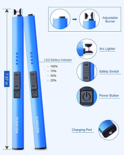 Electric Candle Lighter Plasma Arc Lighters Windproof & Flameless with USB Rechargeable Battery Double Safety Switch (Sapphire Blue)