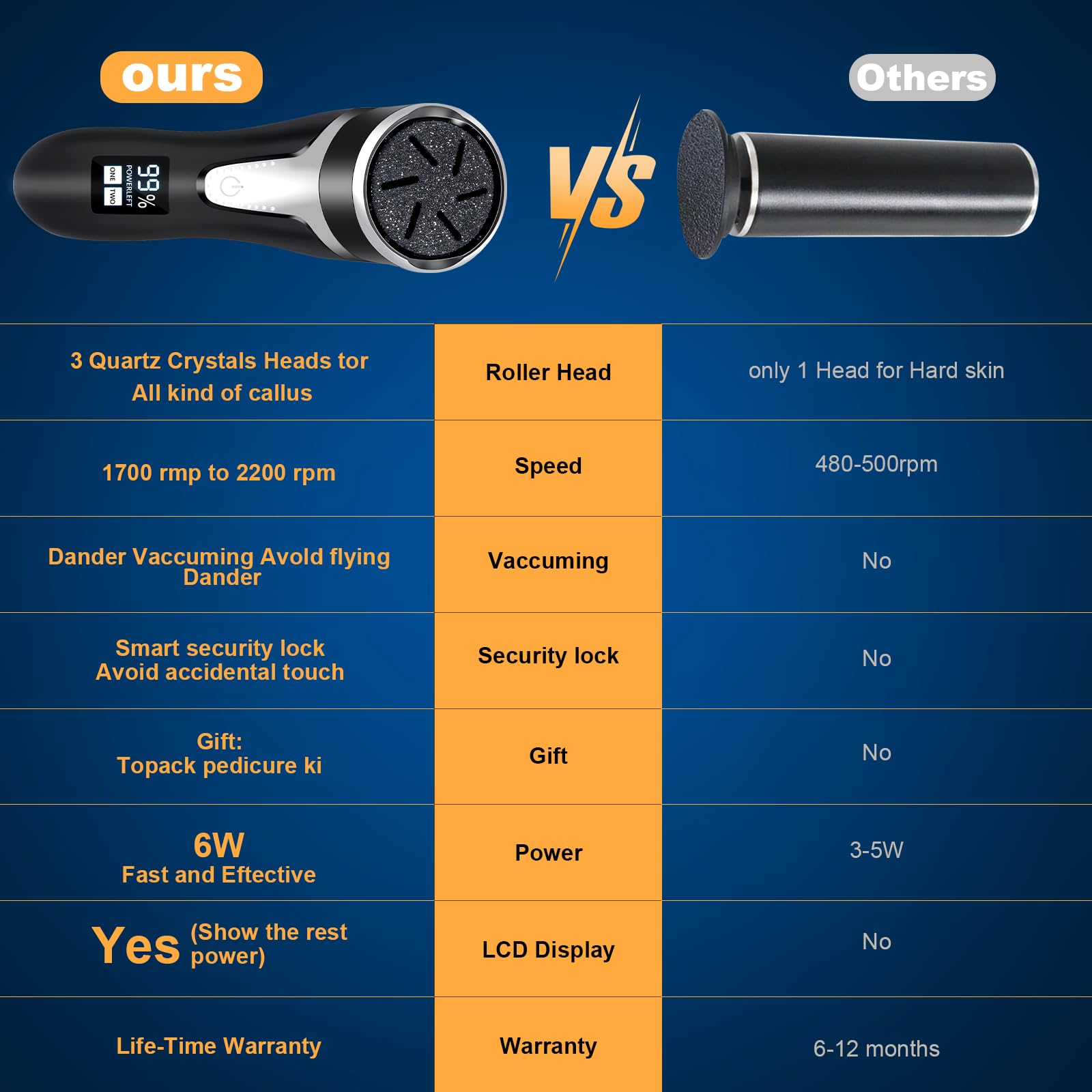 - Multiple Accessories: Comes with a variety of care foot callus removing accessories to make your use more comfortable and make customer's skin as smooth as a baby.
