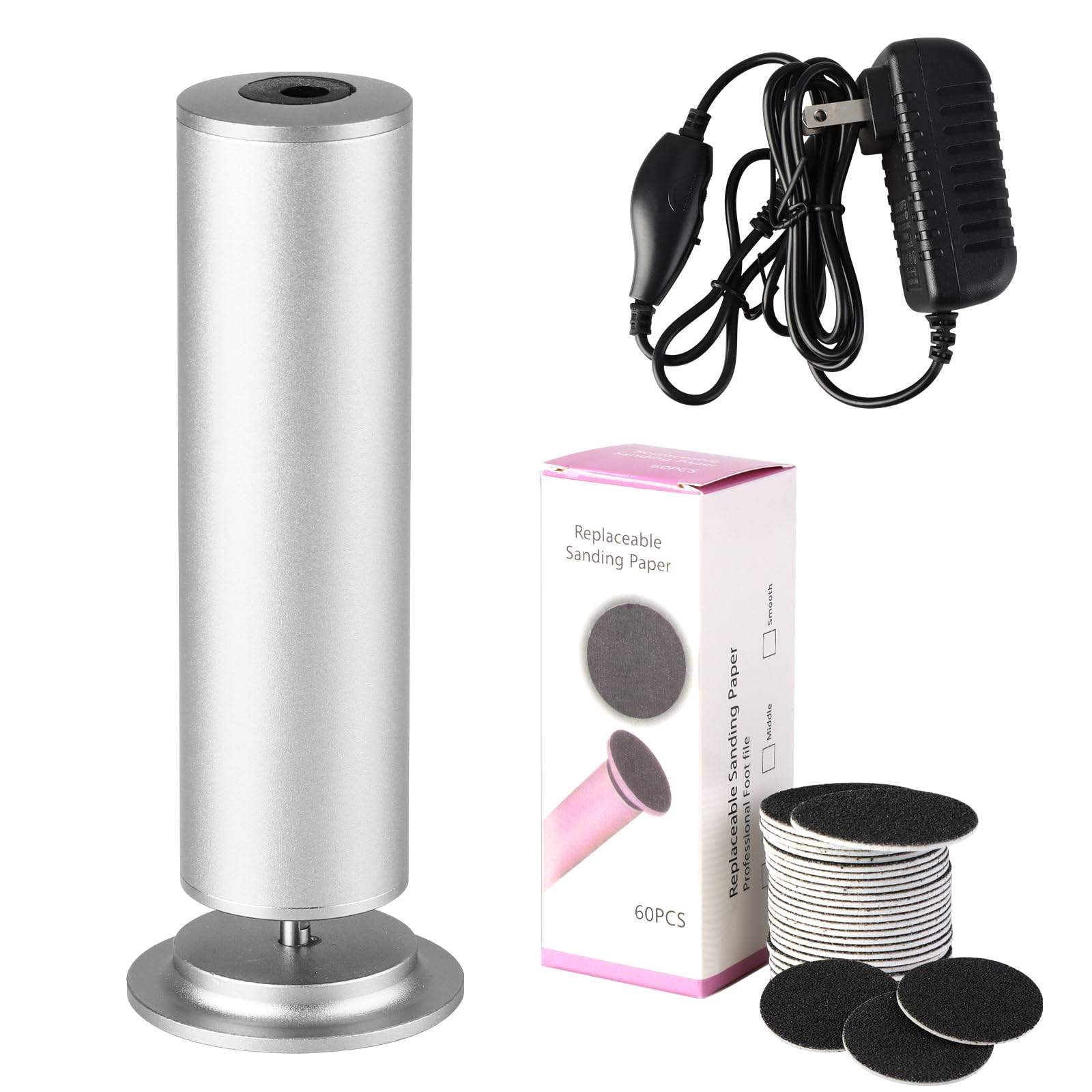 - Premium Aluminum Alloy Body: Our electric foot callus remover features a premium aluminum alloy body that is not only stylish, but also rugged and reliable for long-lasting performance. 60 pieces of sandpaper discs will be given to you as an extra gift. Self-adhesive ability, easy to paste and remove, 1 person 1disc, perfect for family use