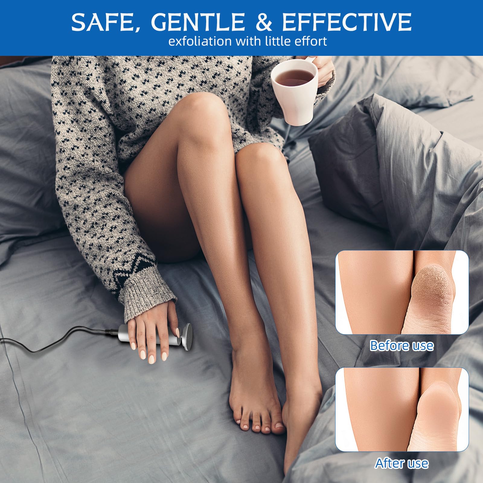 - Effortless Callus Removal: This dermave electric foot callus remover features a powerful motor that rotates 360 degrees to effectively remove dead skin, dry skin, cracked skin, and calluses from your feet, leaving them smooth and soft, provides a gentle yet powerful buff that leaves your feet feeling smooth and rejuvenated