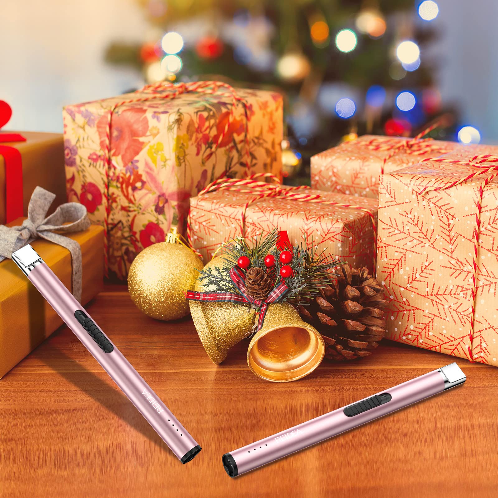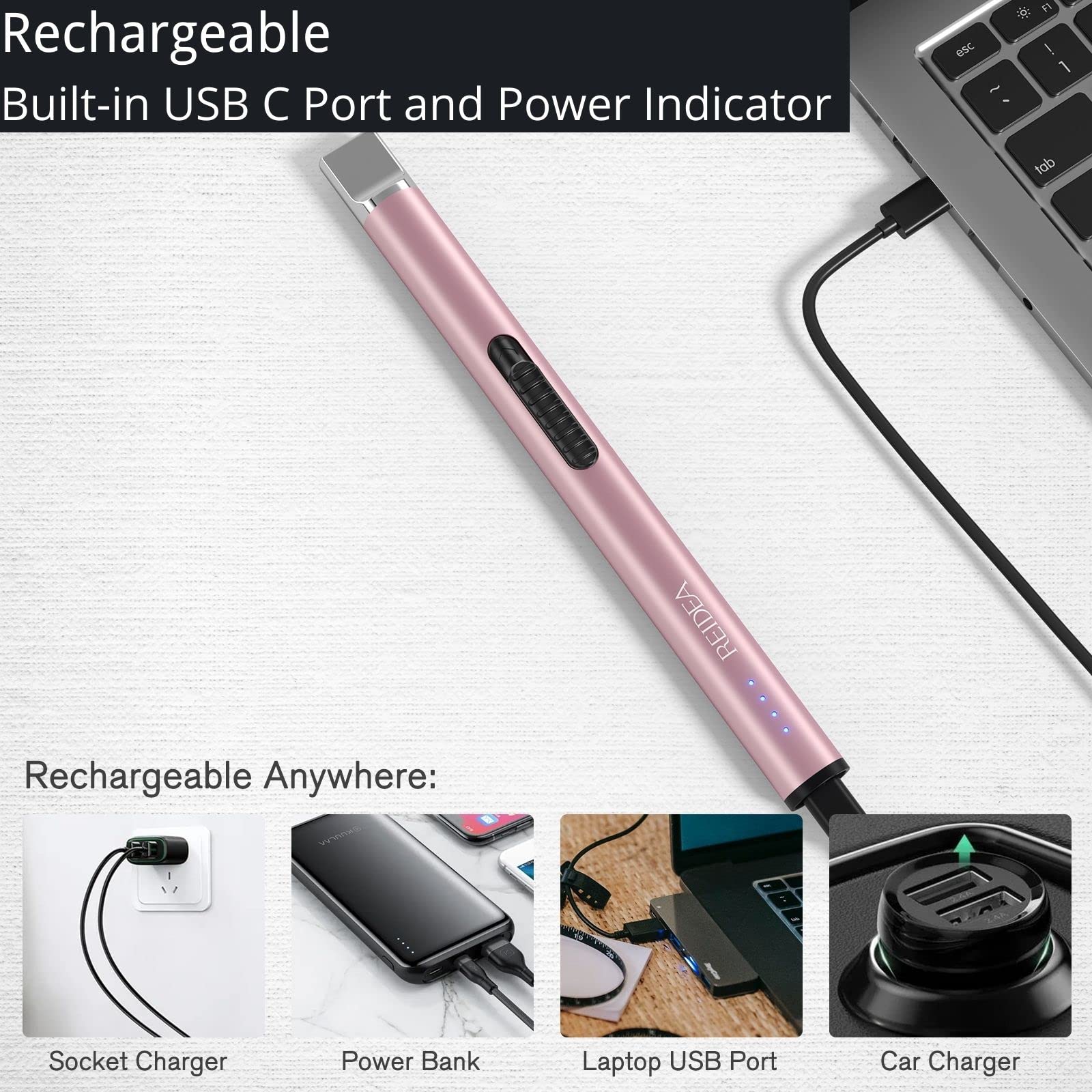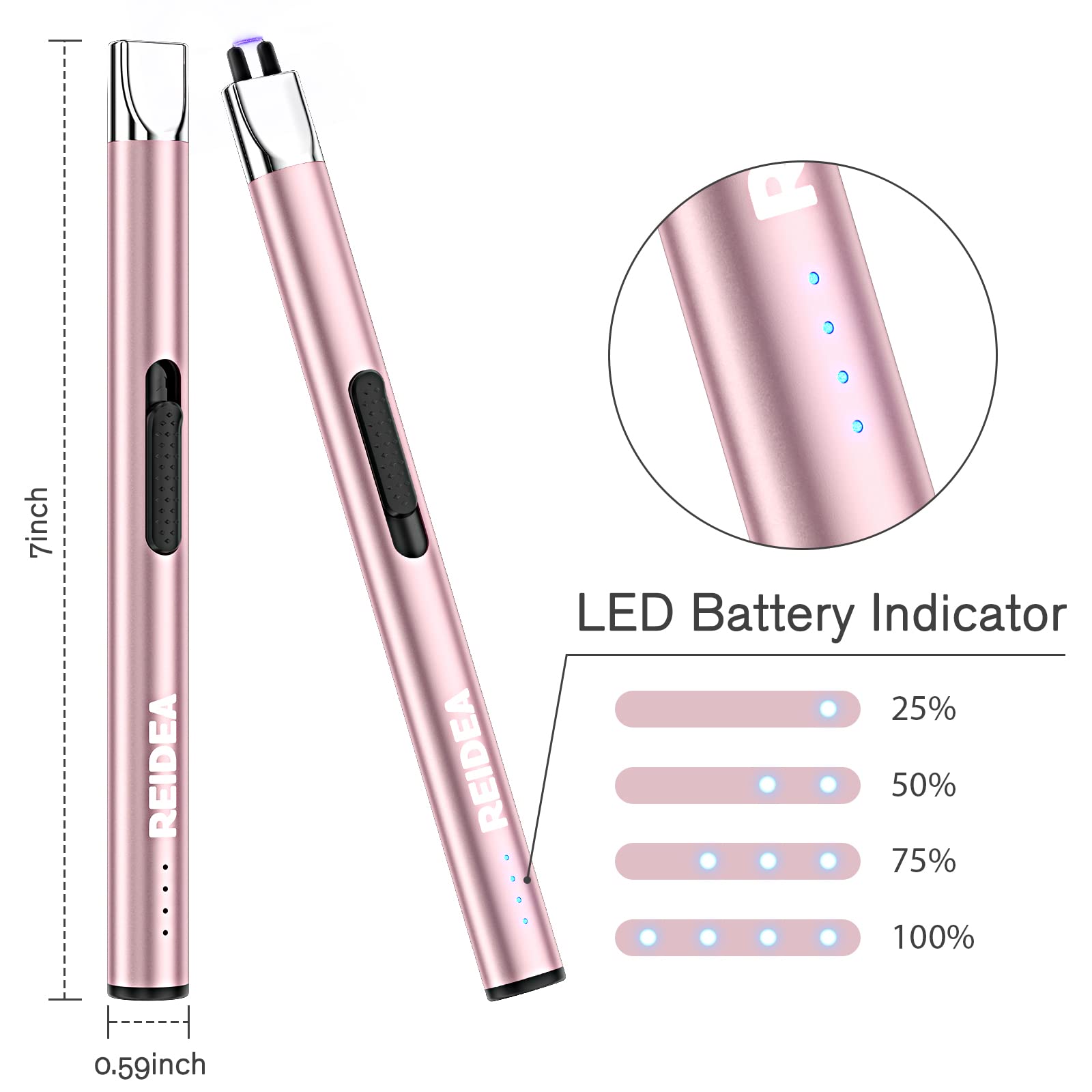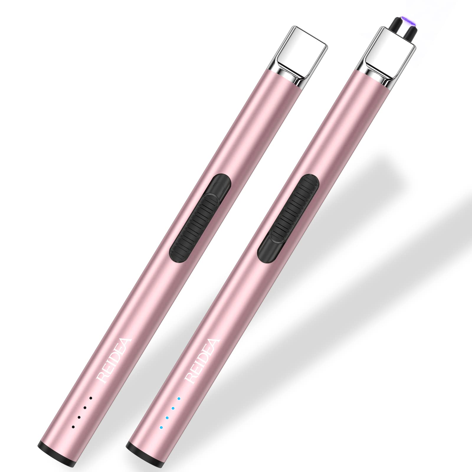 Electric Lighter 2 Pack REIDEA S4 Pro USB Rechargeable Safety Lock with LED Battery Indicator Flameless Windproof Arc Plasma Lighter for Candle, Fireworks (Rose Gold)