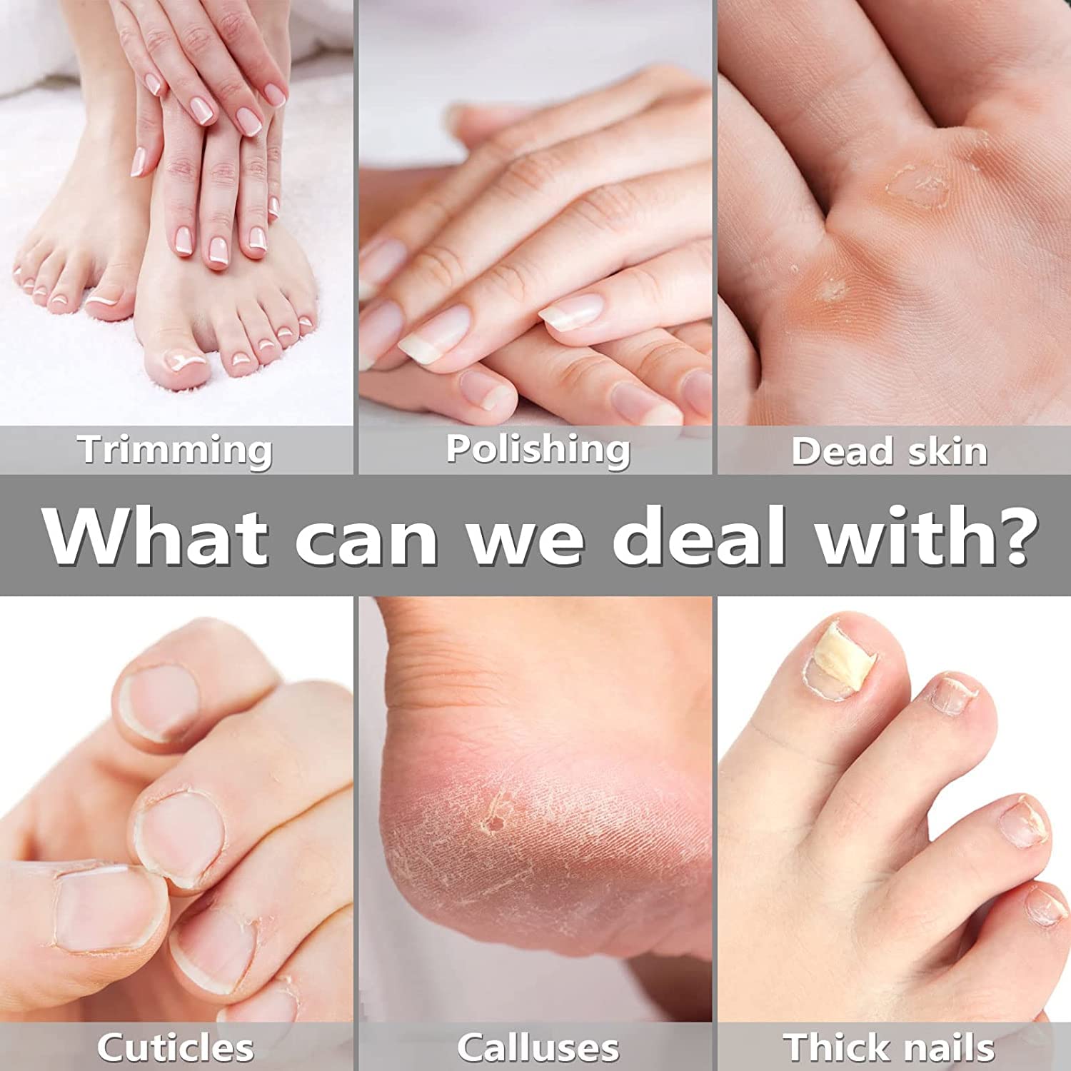 - 【Your Solution for Thick Nails】 Our nail grinder is an essential tool for men, women, and especially seniors with thick nails. Its upgraded powerful motor and high-quality drill bits help shape, trim, and thin thick nails with ease.