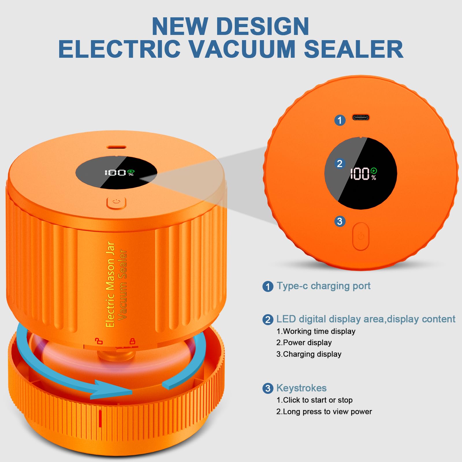 - 【Portable Mason Jar Vacuum Sealer】 Don't have a vacuum sealer? Don't worry!!! We offer you an electric Mason jar sealer that you can use to extract the air from your Mason jars. The sealer is too big to carry with you when you travel or have a picnic? You can also use this cordless Mason jar sealer instead of it.