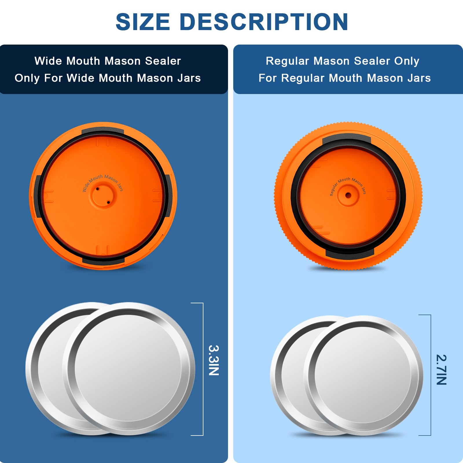 - 【For all your vacuum sealing needs】Includes an electric vacuum sealer contains a wide mouth sealer, a standard mouth seal converter, 4* wide mouth Mason jar lids and 4* regular mouth Mason jar lids, charging cable and user guide. Our food vacuum sealer kit will help you remove the air from your Mason jars and extend the life of your stored food.