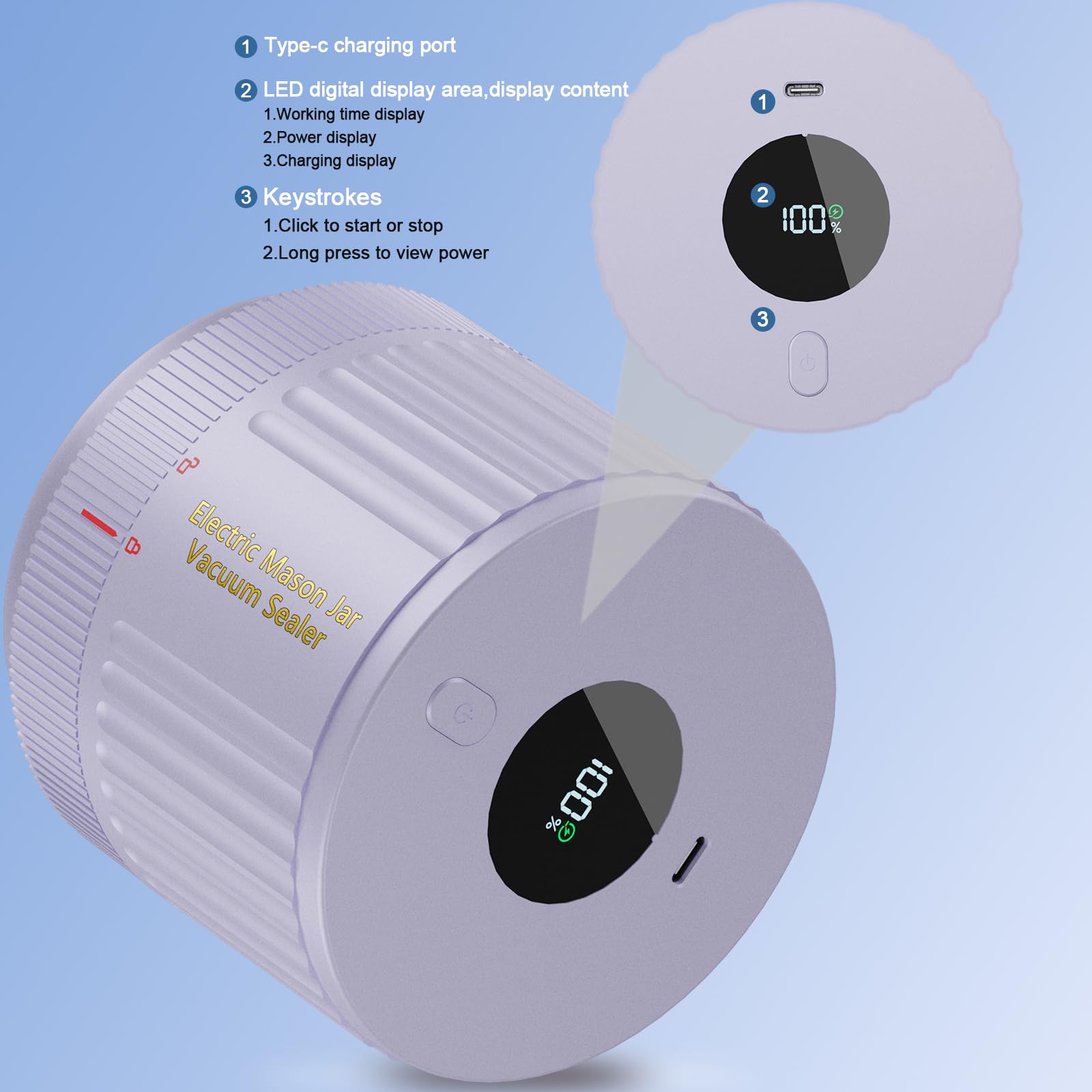 - 【Portable vacuum sealer】Don't have a vacuum sealer? Don't worry!!! We offer you an electric Mason jar sealer that you can use to extract the air from your Mason jars. The sealer is too big to carry with you when you travel or have a picnic? You can also use this electric sealer instead of it.