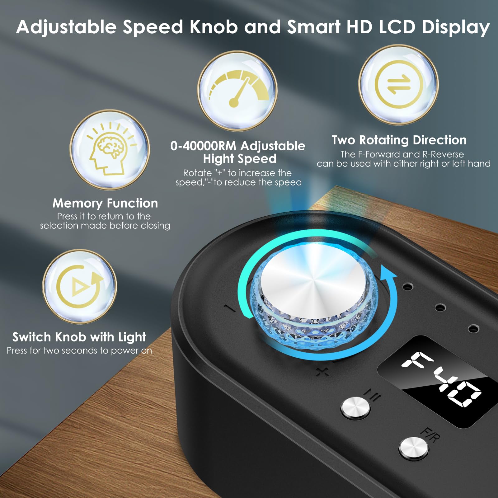 - Easy to Use-Smart LCD display will show the speed and direction,even beginners can adjust the speed accurately without worries.Nail sander's speed knob with light has a beautiful appearance and can be rotated left and right to adjust the speed. Press the F/R key to change the direction of the rotating bit, which enables any right-handed or left-handed use.