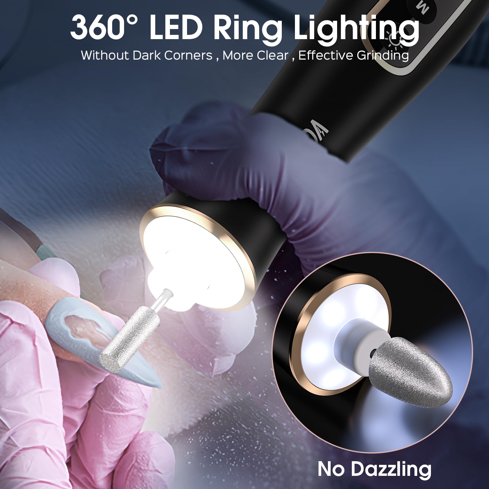 - 360°LED light & Cordless & Portable: If you tired of messy cords and heavy Power Machine, Then your search stop !!! Hoxida Cordless nail dril machine is lightweight, and portable with you wherever you go, professional nail file with 360°LED light, provide you a surrounded clearer view of your grinding area, more efficient and professional for manicure and pedicure home salon use, or travel , you can do a spa hand and foot care experience at anytime anywhere you want.