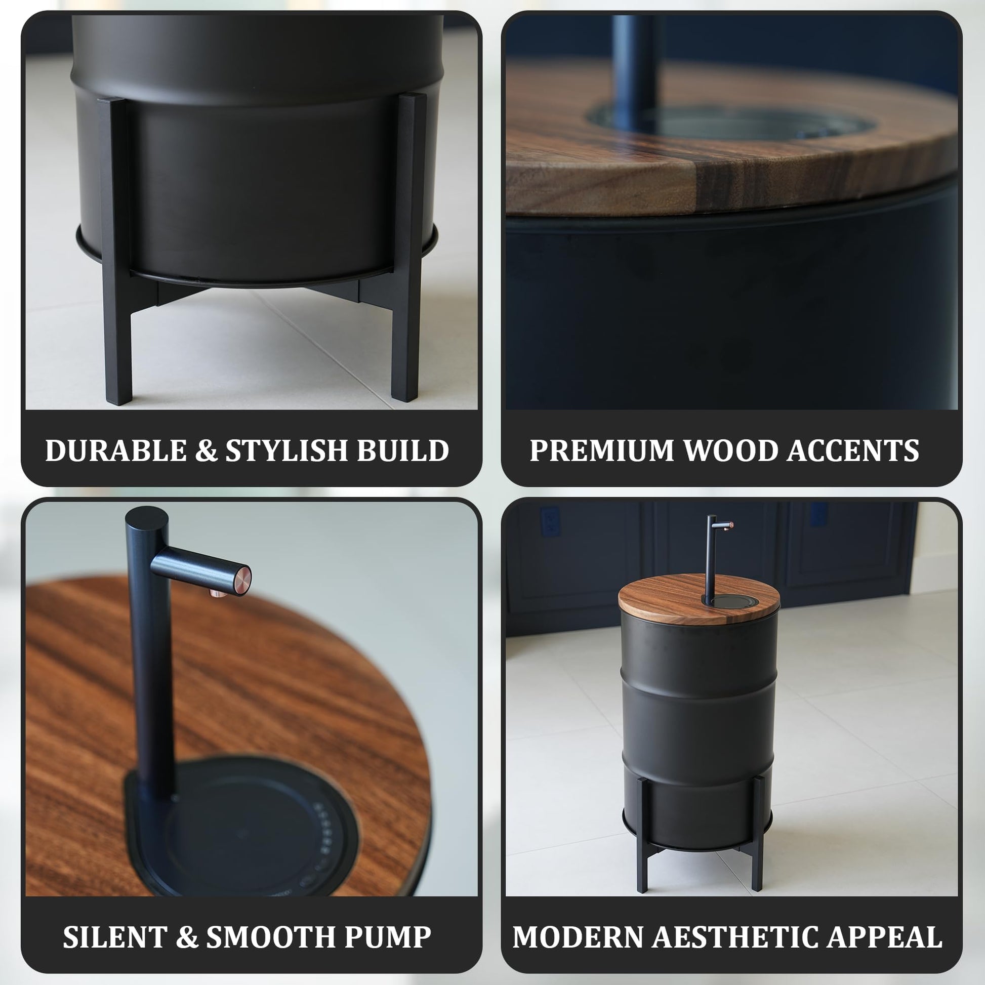 - Walnut Wood Design: We have used a high-quality powder-coated steel barrel base and walnut wood that makes our water dispenser rust and scratch-free. The moisture-resistant wooden top prevents warping while the cover protects against dust for reliable use