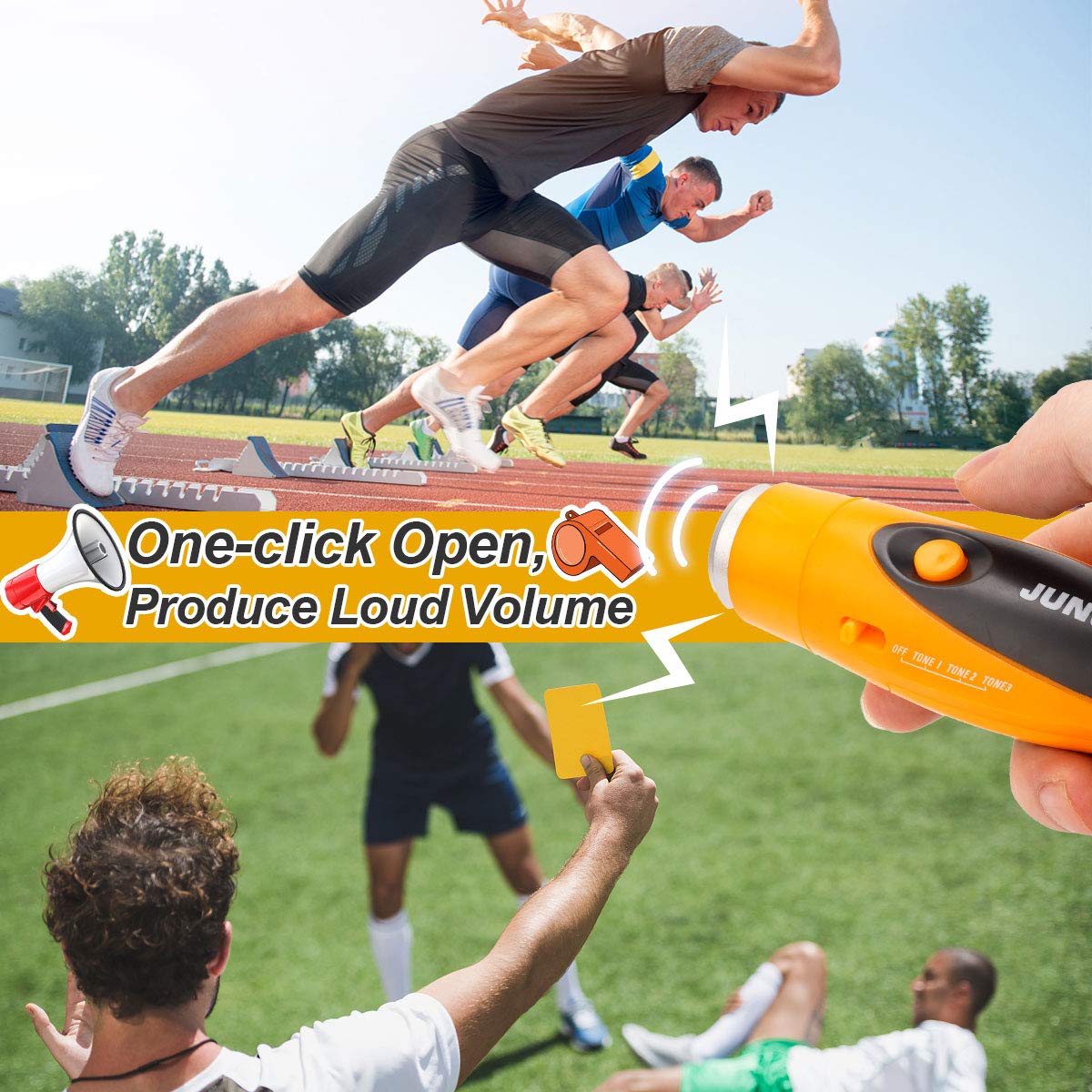- 📢Make the Coach Referee So Easy: The electric whistle gets rid of the traditional way of blowing a whistle with your mouth, and meanwhile provides a loud, clear, strong and easily recognizable sound. It will be more convenient and safer in the referee, training and SOS.
