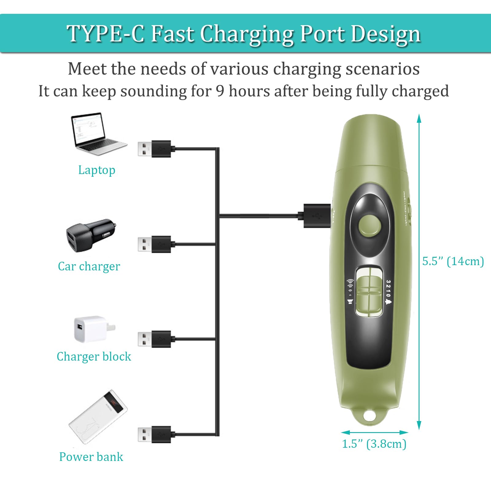 - 👍【USB Rechargeable】Our electric whistle has a built-in 2500 mAh rechargeable lithium battery, and the whistle can sound continuously for 9 hours when fully charged. The rechargeable electronic whistle can be charged directly using USB, eliminating the need for frequent battery replacement, saving the cost of purchasing batteries.