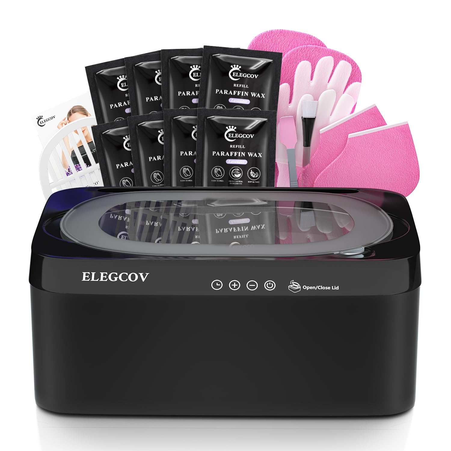 ELEGCOV Paraffin Wax Machine for Hand and Feet, 4500ml Paraffin Warmer with 8 Pack Paraffin Wax Refills, Precision Temperature Control for Reservation Paraffin Wax Bath, Fast Wax Meltdown, Black