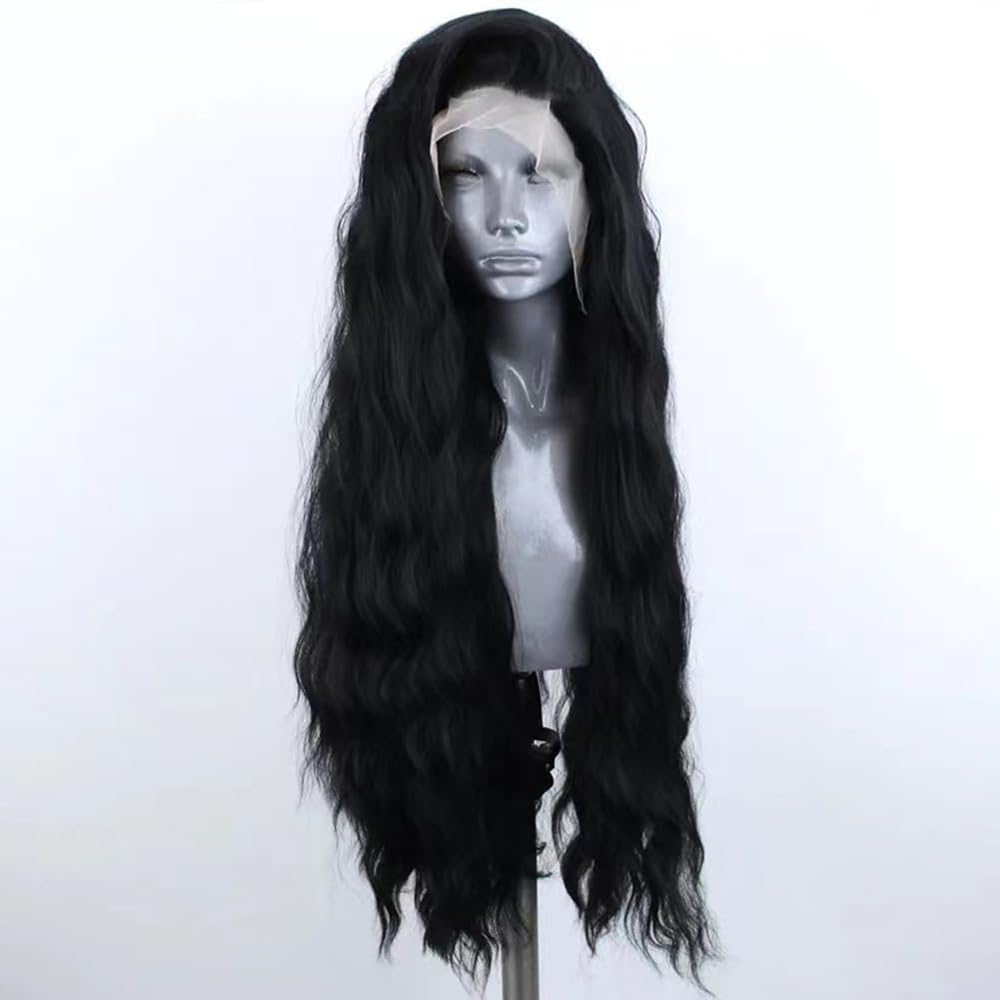Details: ELESTY 13*4 Long Wavy Black Hair Synthetic Lace Front Wigs for Women Loose Curly Natural Hairline Heat Resistant Fiber Lace Front Wigs Water Wave Free Part Glueless Wigs Cosplay Dairly Use 24Inch