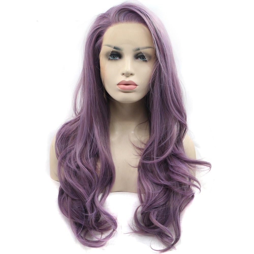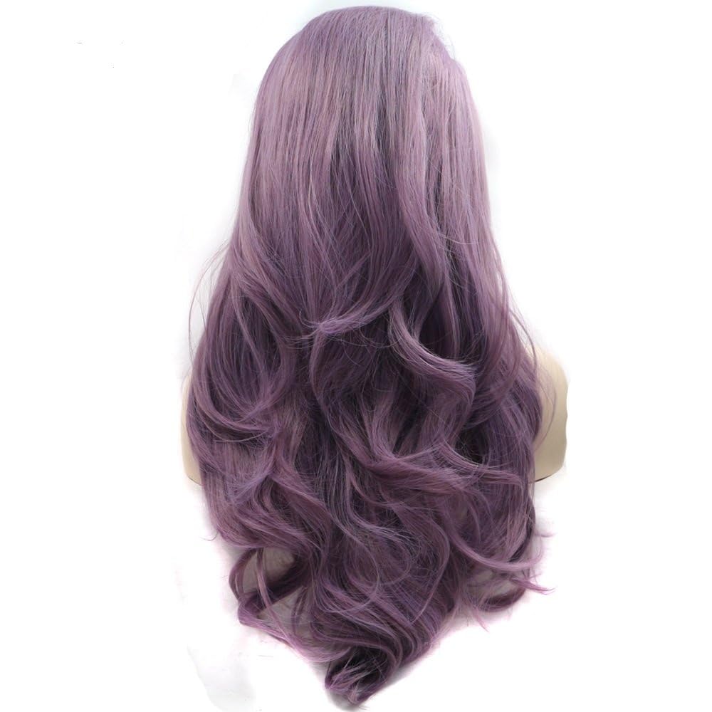 Details: Lucyhairwig Long Wavy Synthetic Lace Front Wig Glueless Purple High Temperature Heat Resistant Fiber Hair Wigs For Black Women