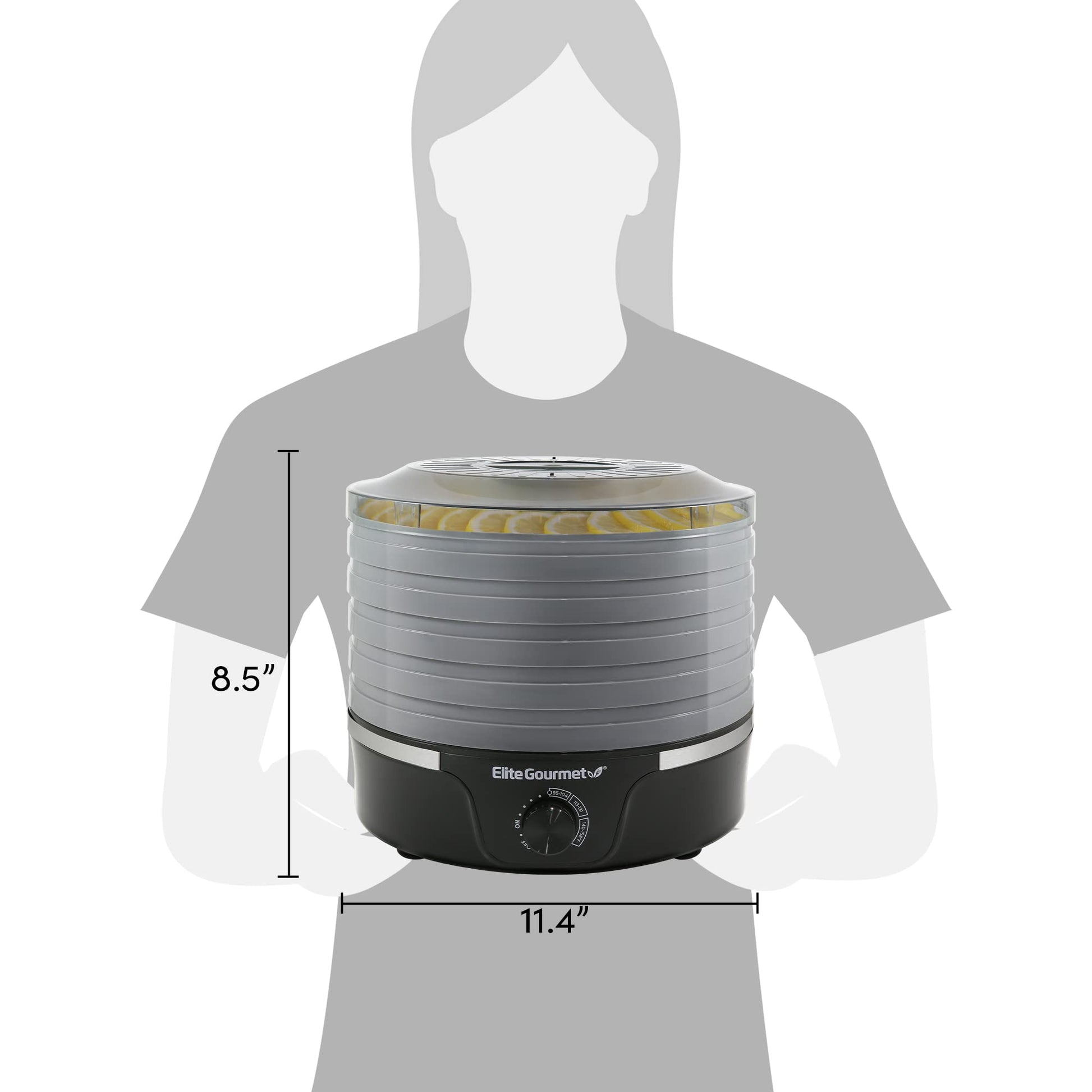 Elite Gourmet EFD319BNG Food Dehydrator, 5 BPA-Free 11.4" Trays Adjustable Temperature Controls, Jerky, Herbs, Fruit, Veggies, Dried Snacks, Black and Grey, 5 Trays