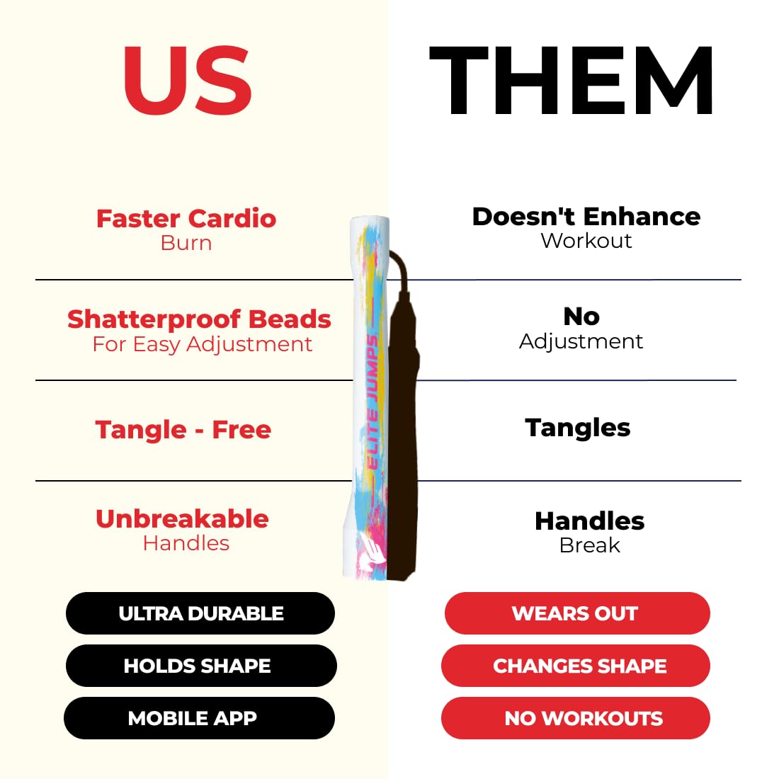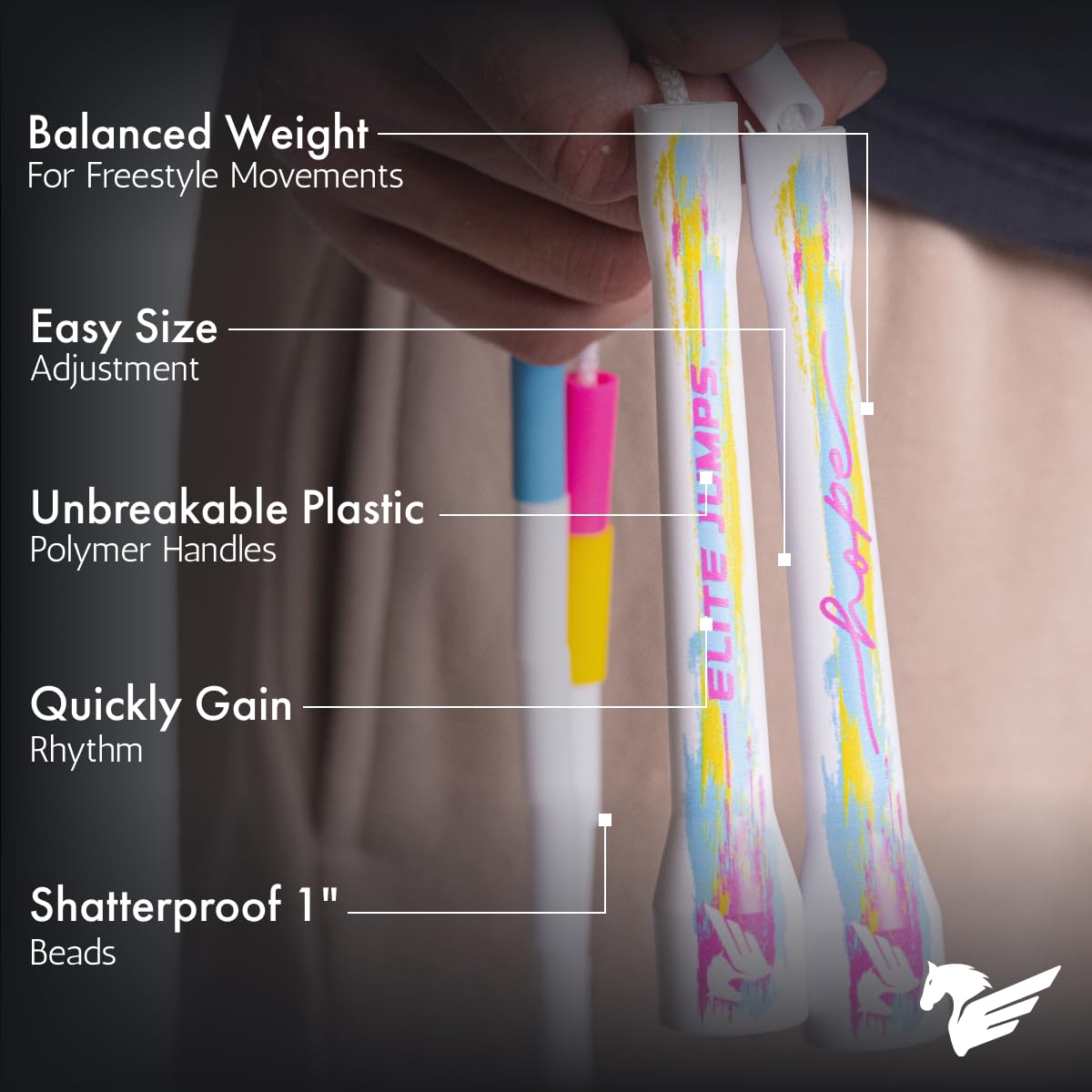 Elite Jumps Beaded Jump Rope | Adjustable Jump Ropes for Fitness w/Unbreakable Handles and Shatterproof Beads | Crossover Jump Rope, Perfect Addition to Your Exercise Equipment | Segmented Jump Rope