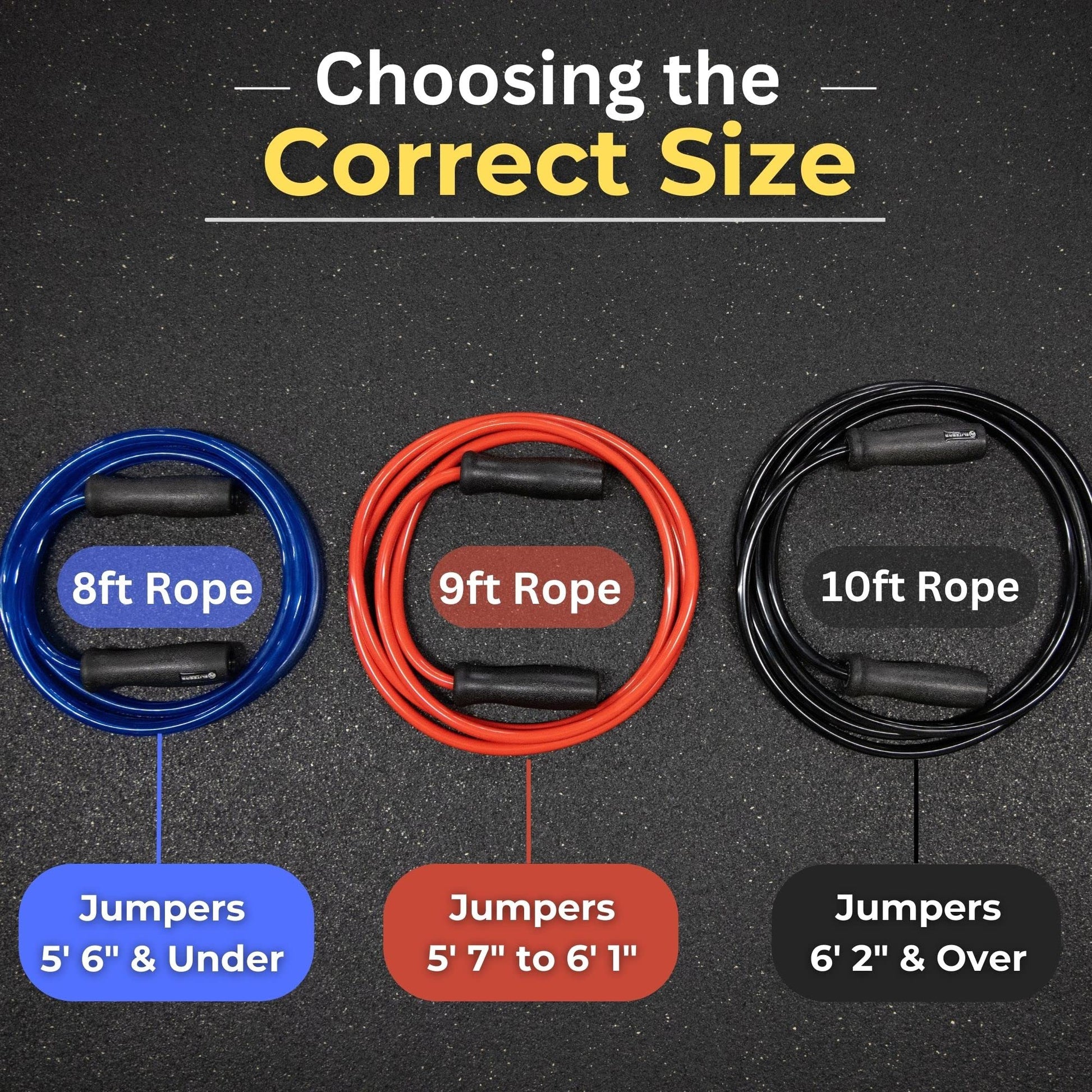 - SIZING: 10ft rope weighs 1.3lbs and is recommended for heights over 6'2' tall. A thick 12mm diameter PVC cord creates extra drag for a quicker cardio fitness workout and forearm/shoulder burn.