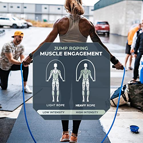 Thick 1-pound jump rope for adding heavy resistance to your jump rope workouts, building forearm and hand strength, and improving single under and double under strength and endurance in shoulders.