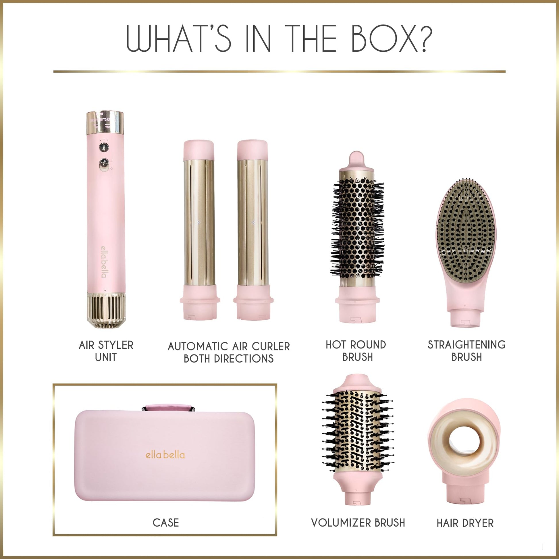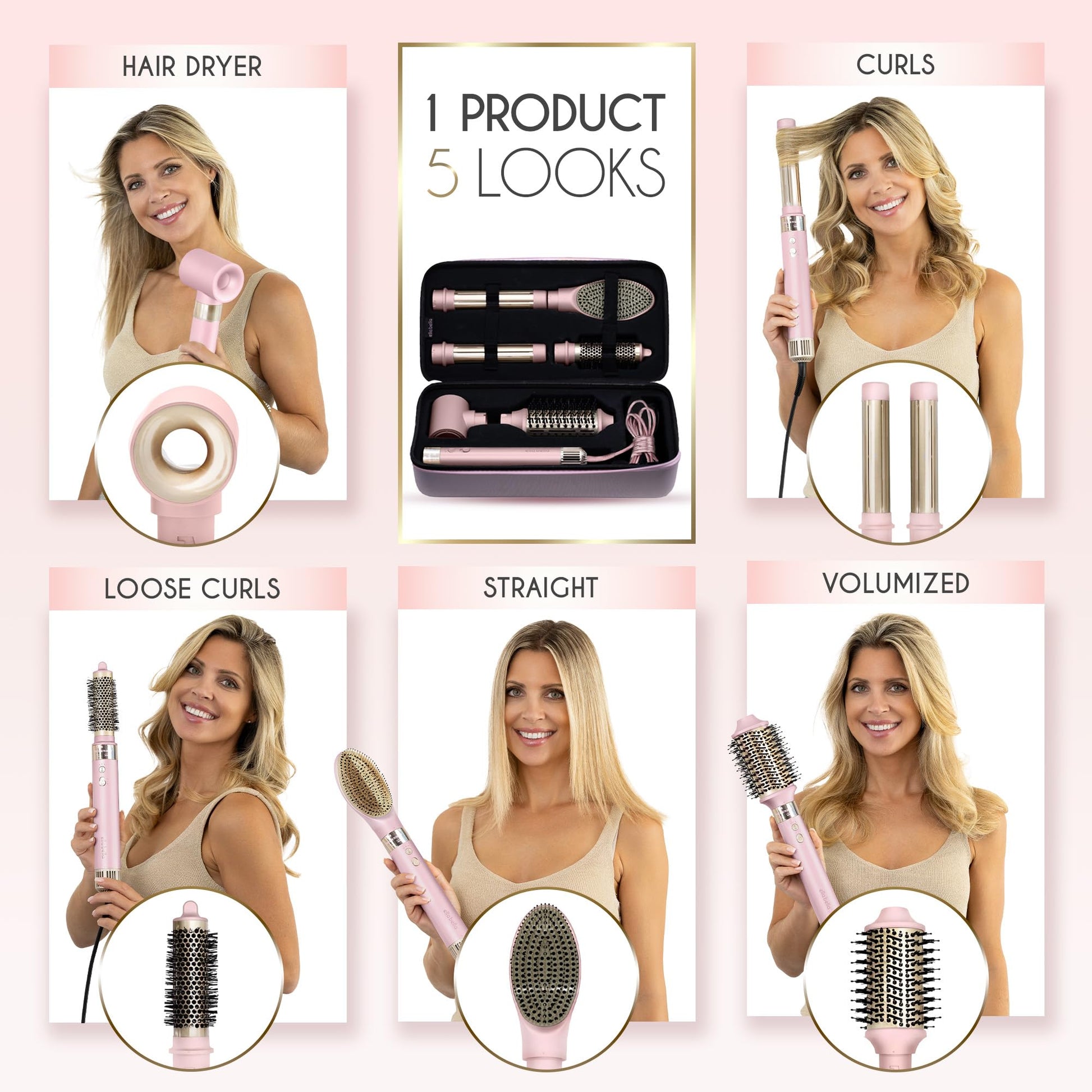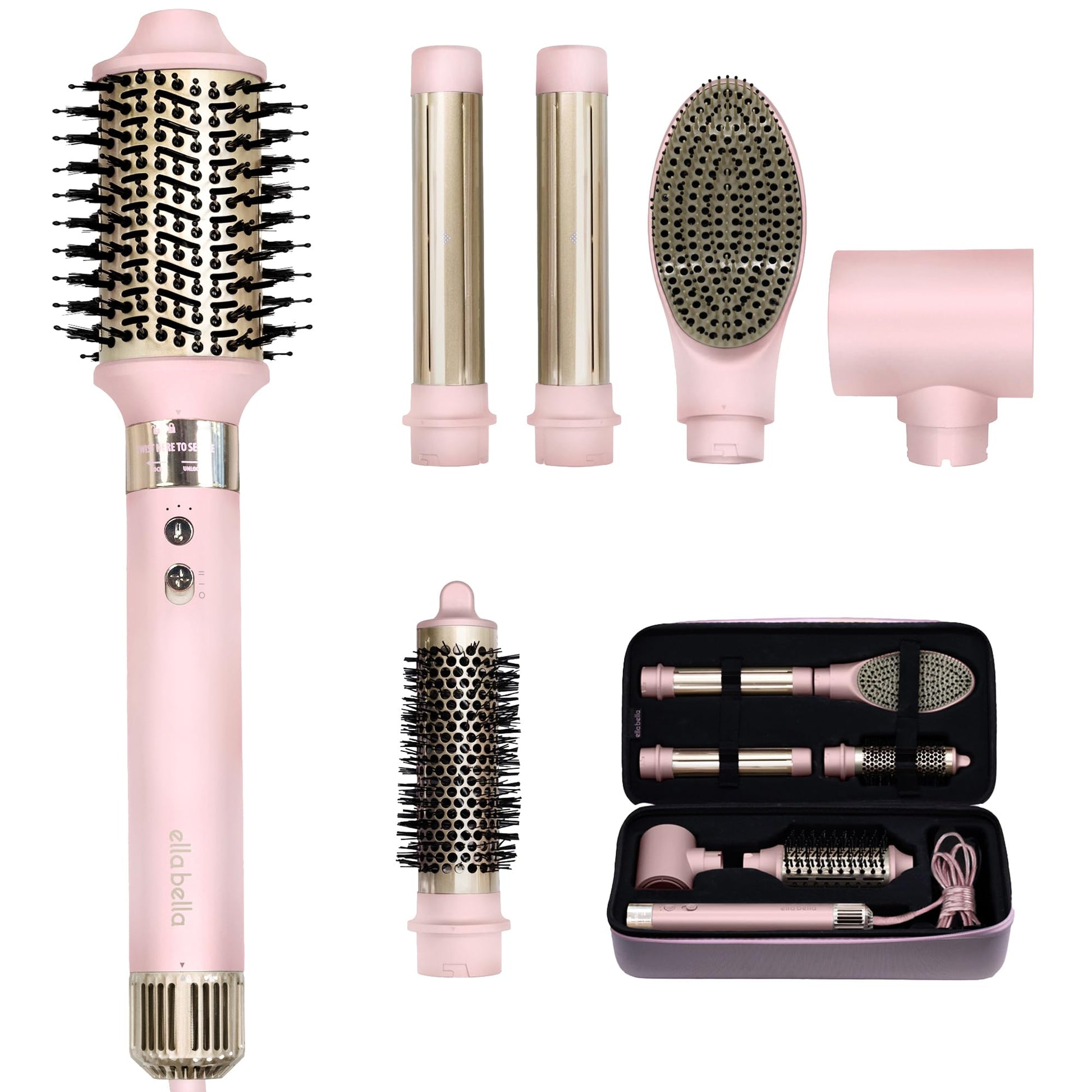 ELLA BELLA® 6 in 1 Professional Hot Air Styler • Powerful Hair Dryer & Straightener Set • Styling Without Heat Damage • Fast Drying Curling Volumizing Straightening • Protective Travel Case (Pink)