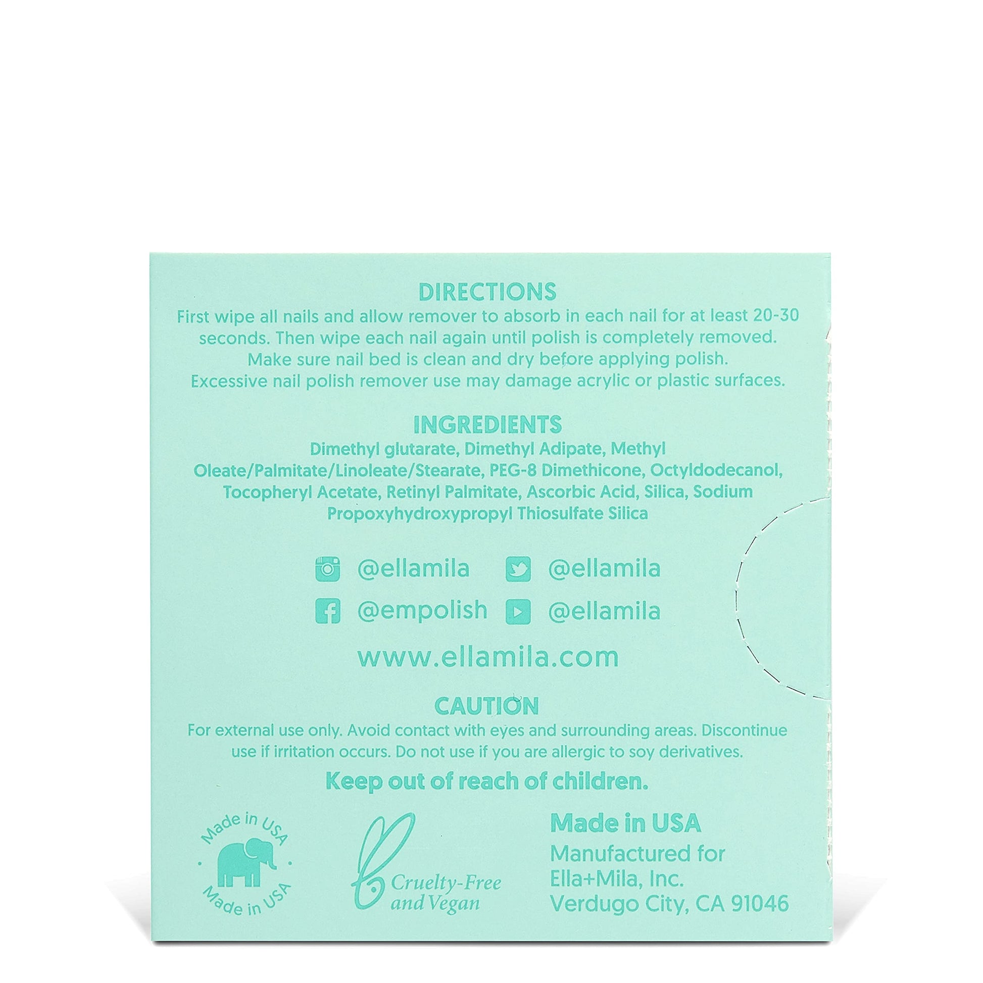 - Proudly Made In USA: Formulated without acetone, alcohol & other harmful chemicals; Our products are safe to use & planet friendly; ella+mila strives to be environmentally responsible & health conscious; Non-toxic lint free wipes you can count on